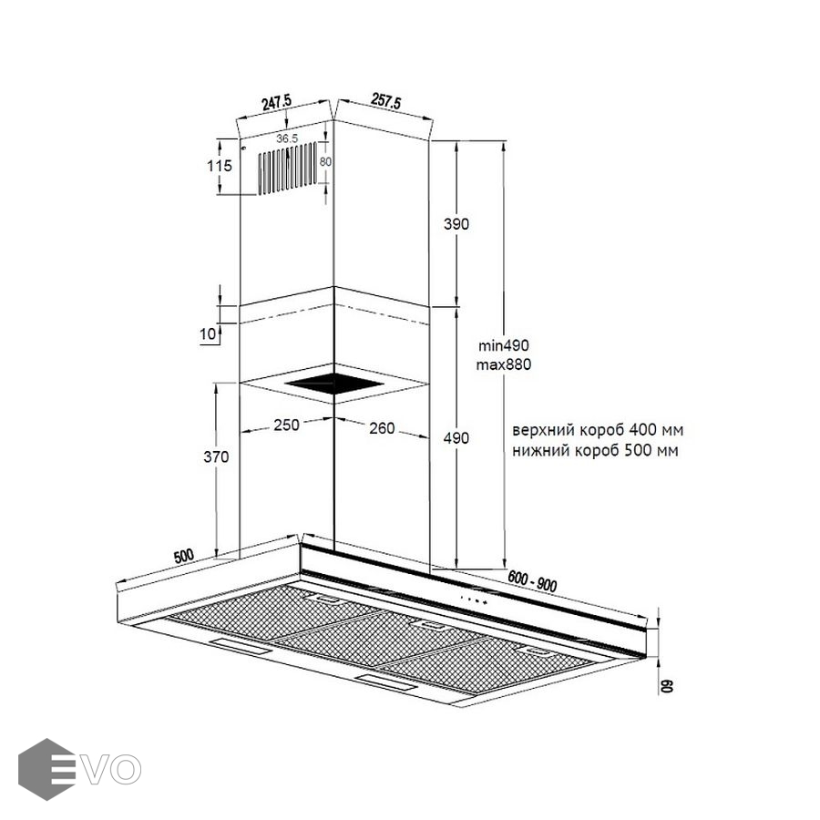 - Габариты (ВхШхГ) (мм): 490-880x600x500