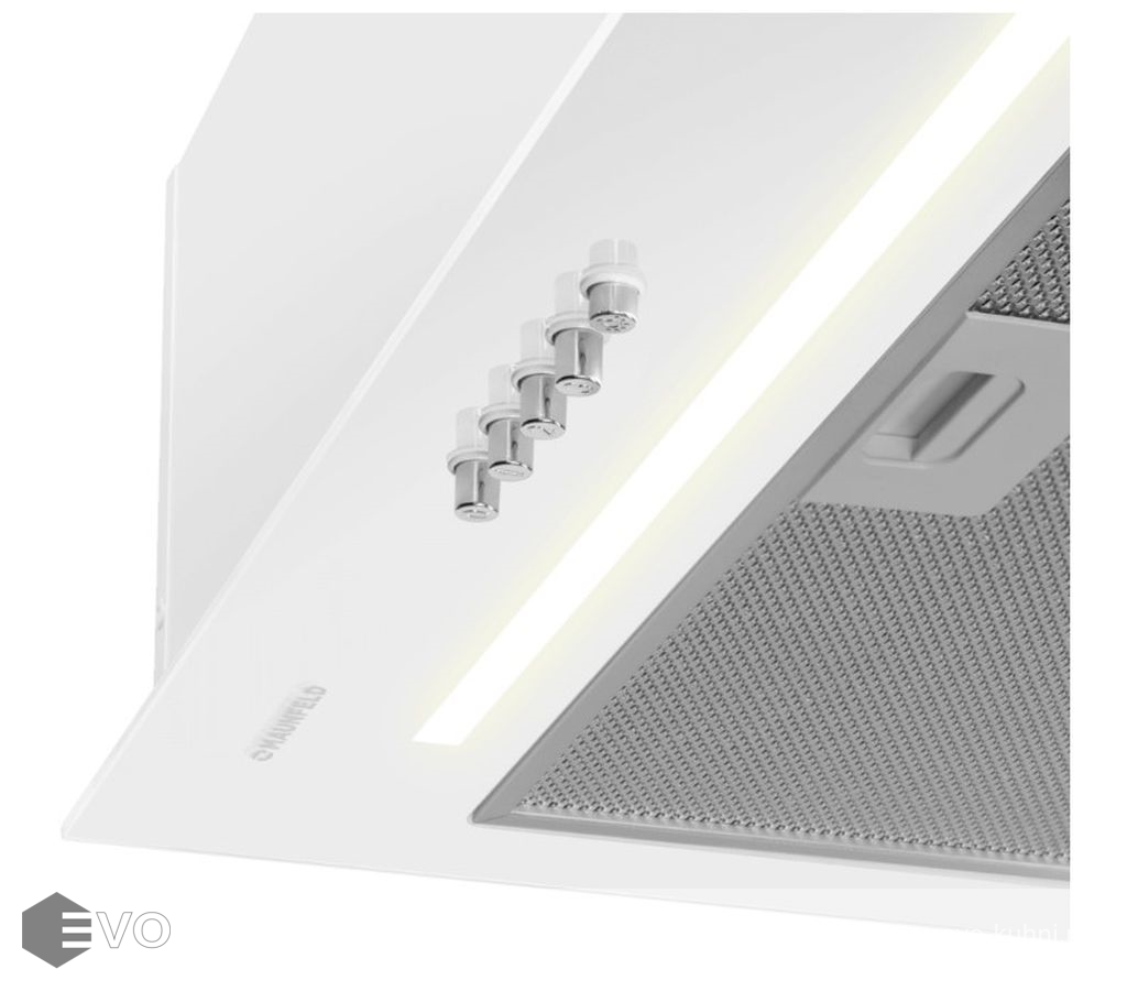 Вытяжка Maunfeld Crosby Hardy 1000Push белого цвета работает в двух режимах отвод и рециркуляция для отвода требуется монтаж воздуховода. Уровень шума составляет всего 51 дБ на максимальной скорости. Светодиодная лента мощностью 4 Вт будет отличным дополнительным источником света на вашей кухне и у нее очень долгий срок службы.