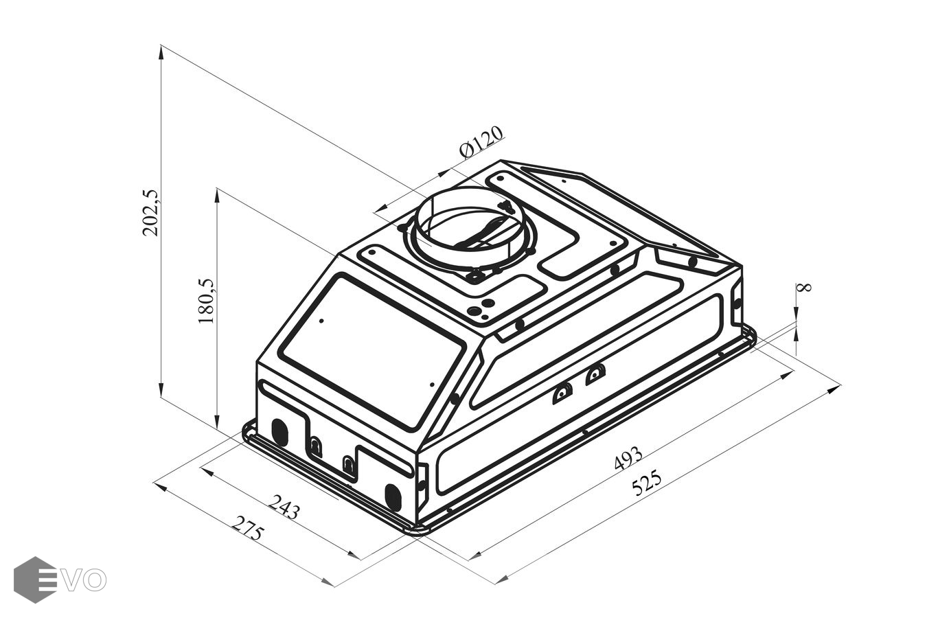 - Диаметр штуцера для отвода воздуха 120 мм