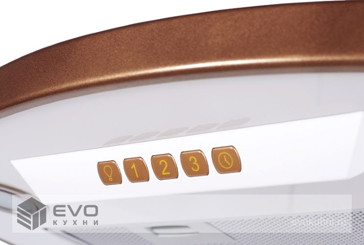 Элегантный образ модели BONA 60 W Bronze дополнен бронзовой отделкой. Три режима скорости позволяют подобрать необходимый вариант для любых условий. Модель работает в режиме отвода и фильтрации. Низкий уровень шума не создает дискомфорт во время нахождения на кухне, беседе или просмотре телевизора. Наличие таймера расширяет возможности вытяжки — через определенный промежуток времени модель автоматически выключается. Галогеновые лампы равномерно освещают рабочую поверхность и являются дополнительным источником света на кухне.