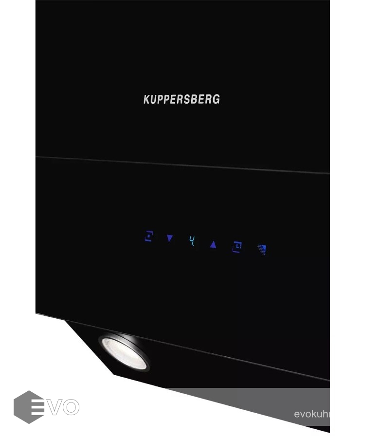 Вытяжка Kuppersberg F 612 B — это строгие линии, наклонная панель, элегантная отделка чёрным стеклом привлекают к себе внимание. Прибор подойдёт для кухонь площадью до 12 кв. метров. Она обладает максимальной производительностью до 600 м3 воздуха в час — для очистки воздуха в большинстве случаев достаточно включить прибор на первую или вторую скорость. Уровень шума равняется 42 дБ, ее работу Вы даже не заметите.