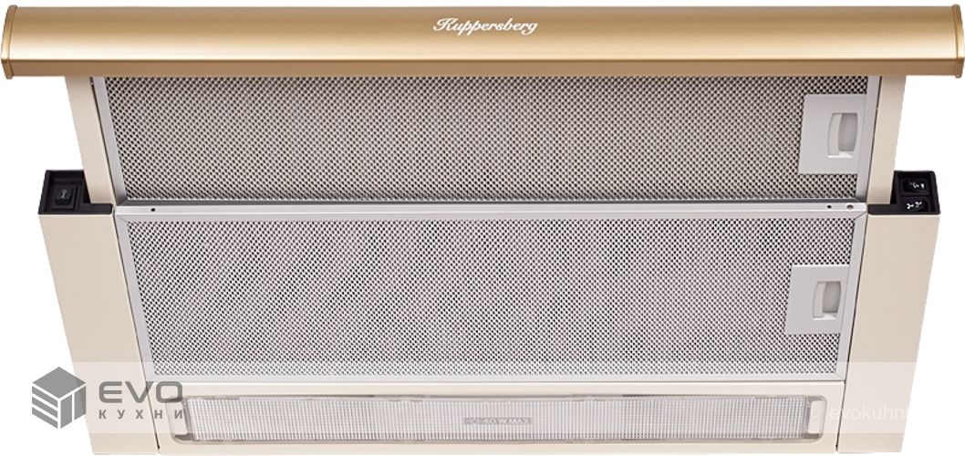Встраиваемая вытяжка Kuppersberg SLIMLUX II 60 Bronze — встраиваемая в подвесной шкаф вытяжка. Благодаря двум режимам работы (проточному и рециркуляционному) и производительности в 550 м3/ч, отлично справляется с копотью, испарениями и запахами разного рода путём их выведения в вентиляционную систему либо фильтрации и циркуляции воздуха с помощью угольного фильтра.