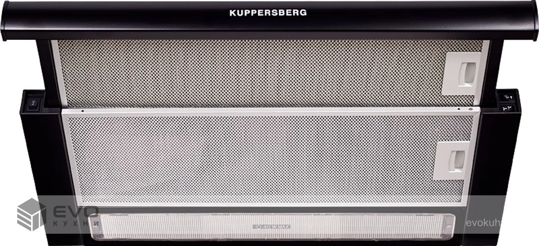 Встраиваемая вытяжка Kuppersberg SLIMLUX II 60 SGBG — встраиваемая в подвесной шкаф вытяжка. Благодаря двум режимам работы (проточному и рециркуляционному) и производительности в 550 м3/ч, отлично справляется с копотью, испарениями и запахами разного рода путём их выведения в вентиляционную систему либо фильтрации и циркуляции воздуха с помощью угольного фильтра.