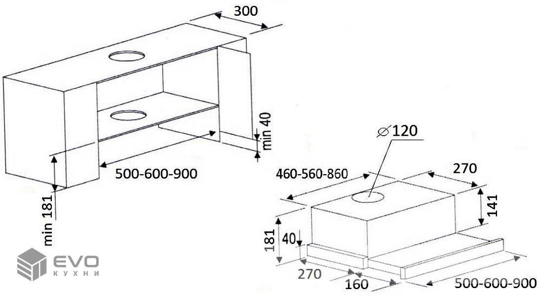 Тип вытяжки : Встраиваемая (в шкаф)