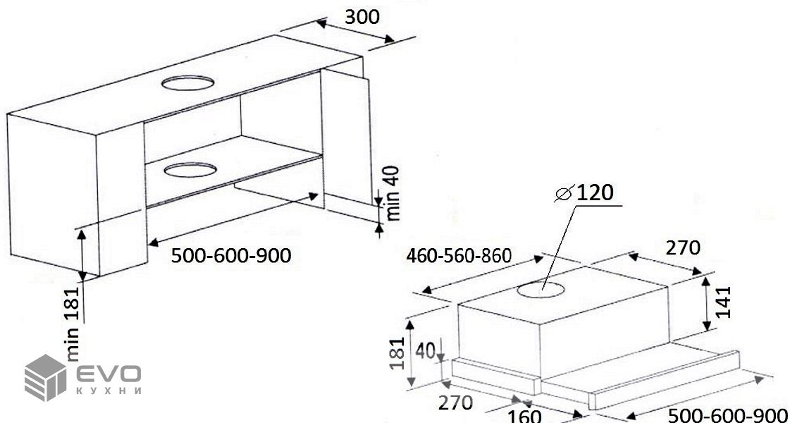 Тип вытяжки : | Встраиваемая (в шкаф) |