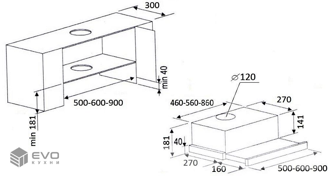 Тип вытяжки : | Встраиваемая (в шкаф) |