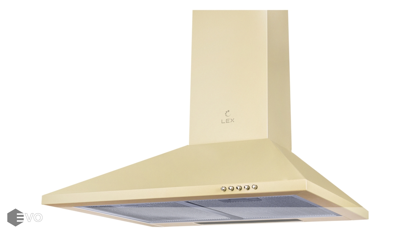 Купольная вытяжка LEX BASIC 600 IVORY – модель выполнена из окрашенной стали, работает на трех скоростях в режимах отвода и рециркуляции, управление производится при помощи кнопок. Две светодиодные лампы обеспечат освещение рабочей поверхности.