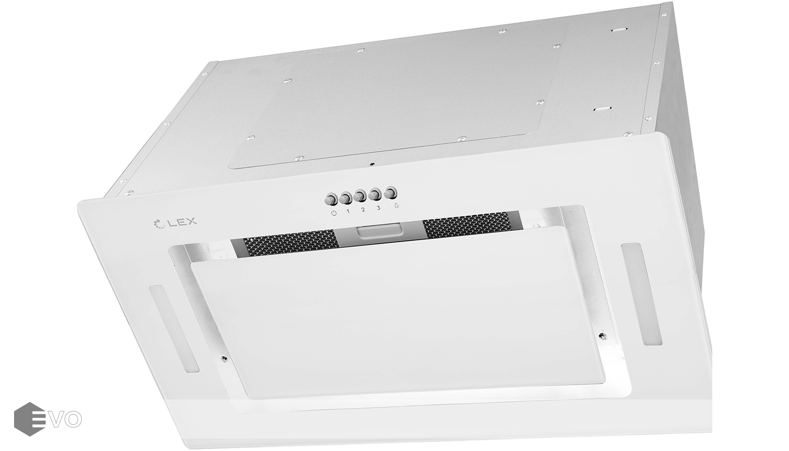 Полновстраиваемая вытяжка LEX GS BLOC G 600 WHITE – вытяжка полностью монтируется в кухонный шкаф, где видимой остается только нижняя панель и лампы подсветки. Модель оснащена современными LED лампами, кнопочным управлением. Кухонная встраиваемая вытяжка незаметна в дизайне и будет гармонично смотреться как в классических, так и скандинавских интерьерах.