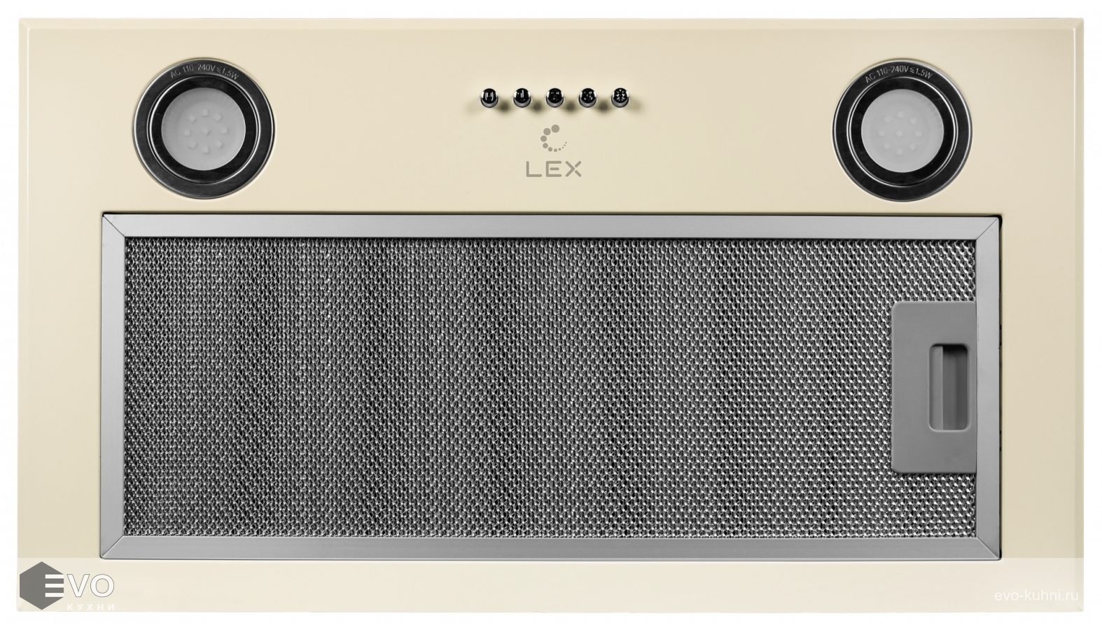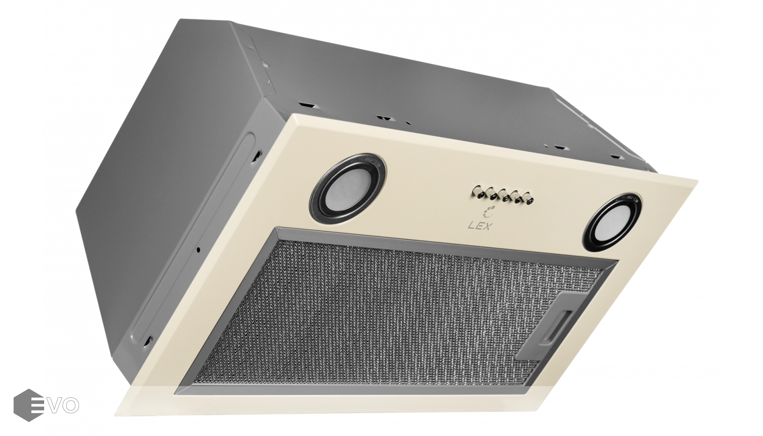 Полновстраиваемая вытяжка LEX GS BLOC P 600 IVORY LIGHT (белый антик) – вытяжка полностью монтируется в кухонный шкаф, где видимой остается только нижняя панель и лампы подсветки. Модель оснащена LED подсветкой, кнопочным управлением. Кухонная встраиваемая вытяжка незаметна в дизайне и будет гармонично смотреться как в классических, так и скандинавских интерьерах.