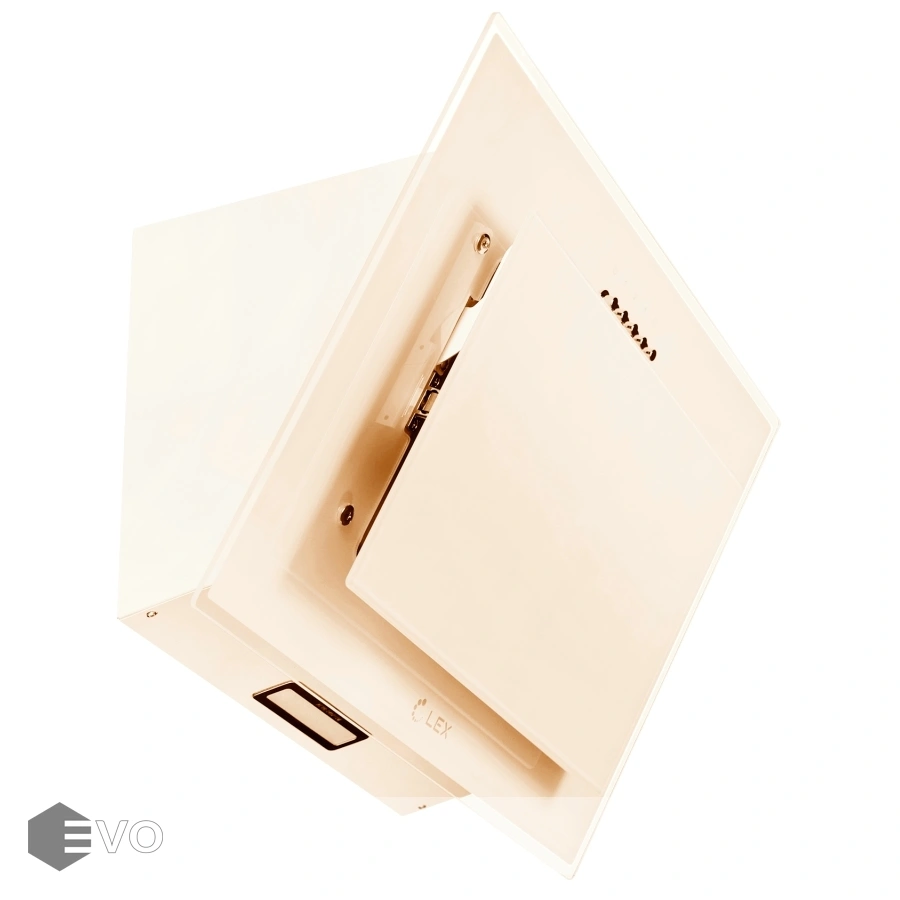 Наклонная вытяжка LEX MIKA G 600 IVORY – оснащена кнопочной системой управления, выполнена в корпусе из окрашенной стали с фасадом из закаленного стекла. Особый шик модели Mika G – прозрачное обрамление стеклянного фасада. Прибор может функционировать как в режиме отвода воздуха в вентиляционную шахту, так и в режиме рециркуляции. Система периметрального всасывания обеспечивает качественное очищение воздуха и сниженный уровень шума. Уникальный мотор вытяжки выполнен по технологии IQM (Innovative Quiet Motor), благодаря которому обеспечивается акустический комфорт во время работы на любой скорости.
