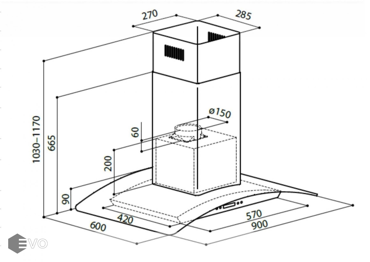 - Диаметр воздуховода, мм: 150