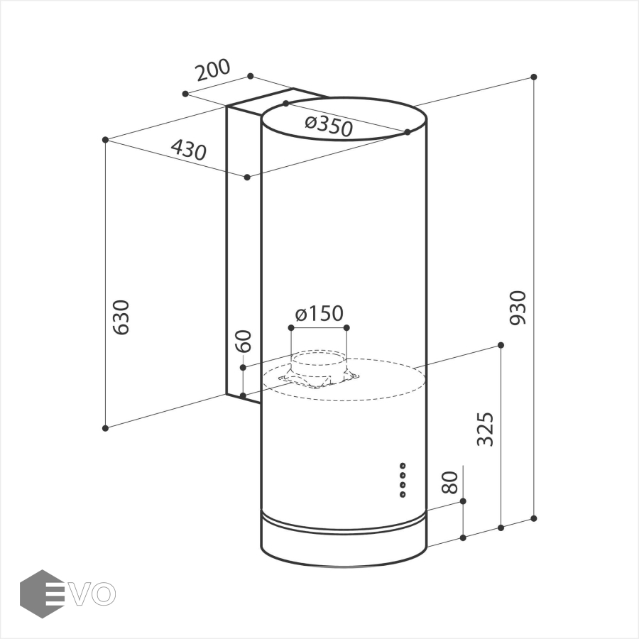 Цилиндрическая настенная вытяжка LEX TUBO 350 – стильная вытяжка предназначена для настенного монтажа, выполнена из нержавеющей стали. Управление кнопочное. Две светодиодные лампы обеспечат освещение рабочей поверхности.