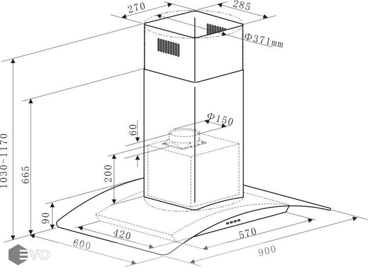 - Высота установки над электрическими варочными поверхностями, мм: 650