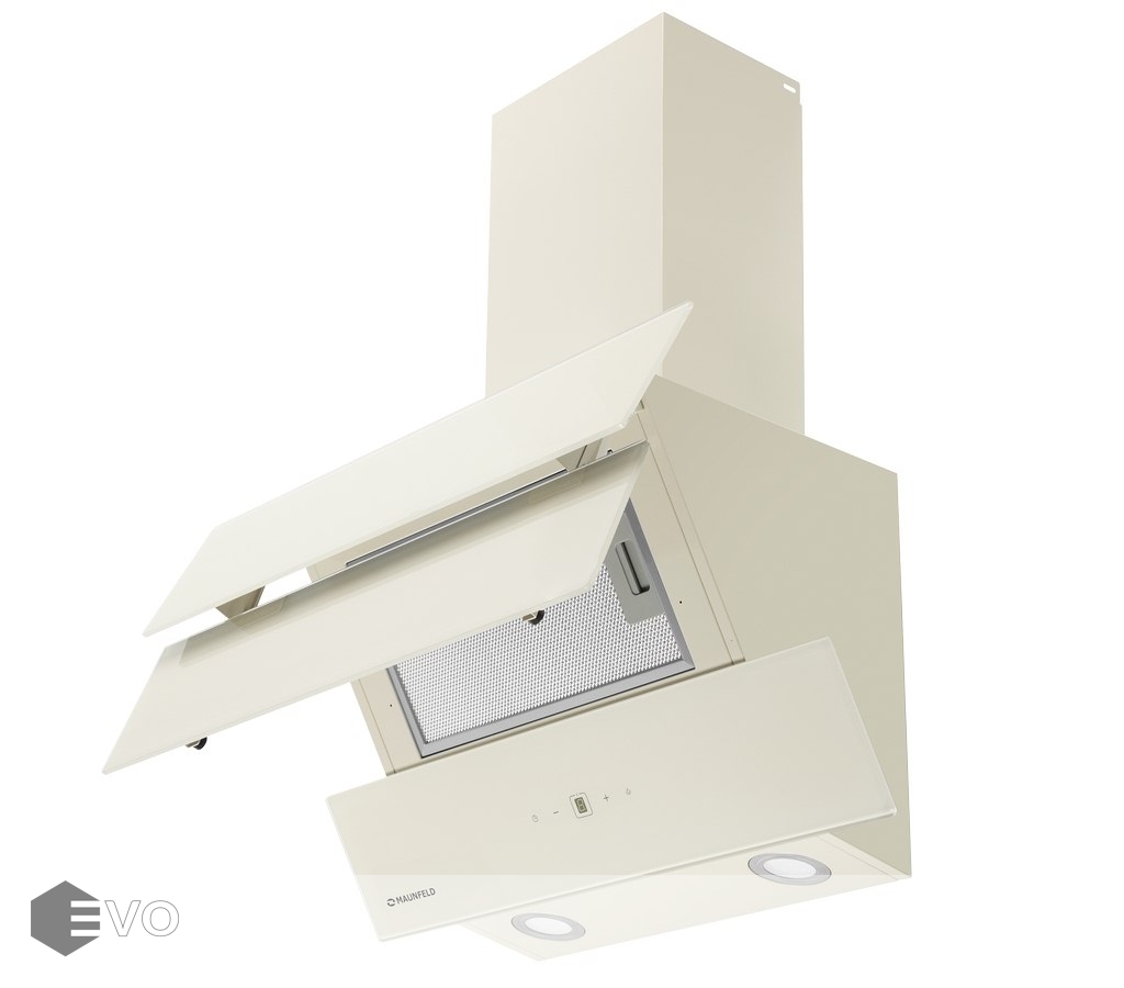 Наклонная вытяжка MAUNFELD Cascada 60 бежевый – наклонная подойдет для кухни площадью до 20 кв.м. Монтируется на стену над поверхностью плиты и работает в двух режимах – отвода (при подключении к системе вентиляции) и рециркуляции (при использовании сменного угольного фильтра). Корпус выполнен из нержавеющей стали. Дизайнерский фасад представляет собой каскад из 3-х сверхпрочных закаленных стекол в цвет корпуса. Благодаря такому расположению панелей принцип периметрического втягивания воздуха действует особенно эффективно.