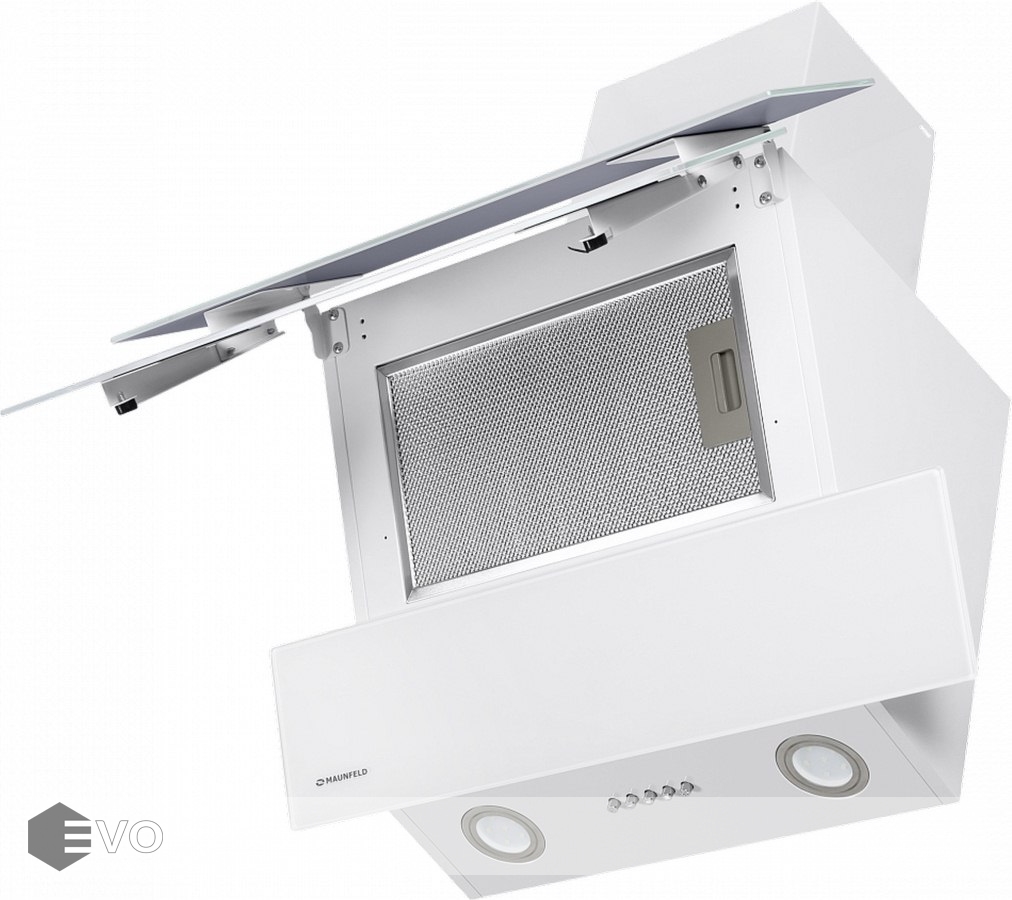 Наклонная вытяжка MAUNFELD Cascada Push 50 белый – это оптимальное решение для большой кухни (до 20 кв.м). Монтируется на стену над поверхностью плиты и работает в двух режимах: отвода (при подключении к системе вентиляции) и рециркуляции (при использовании сменного угольного фильтра). Кнопочное управление находится на панели освещения и позволяет выбрать одну их 3-х скоростей вентилятора и включить освещение - 2 LED-источника по 1 Вт каждый.