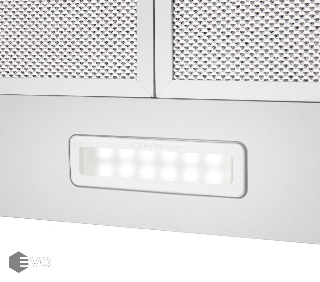 Вытяжка выполнена из нержавеющей стали с эмалевым покрытием черного цвета.  Большая площадь рабочей зоны, состоящей из двух многослойных жироулавливающих фильтров, позволяет эффективно захватывать загрязненный воздух на кухне большой площади (до 20 кв.м). Фильтры легко снимаются и в случае необходимости очистки полностью разбираются.