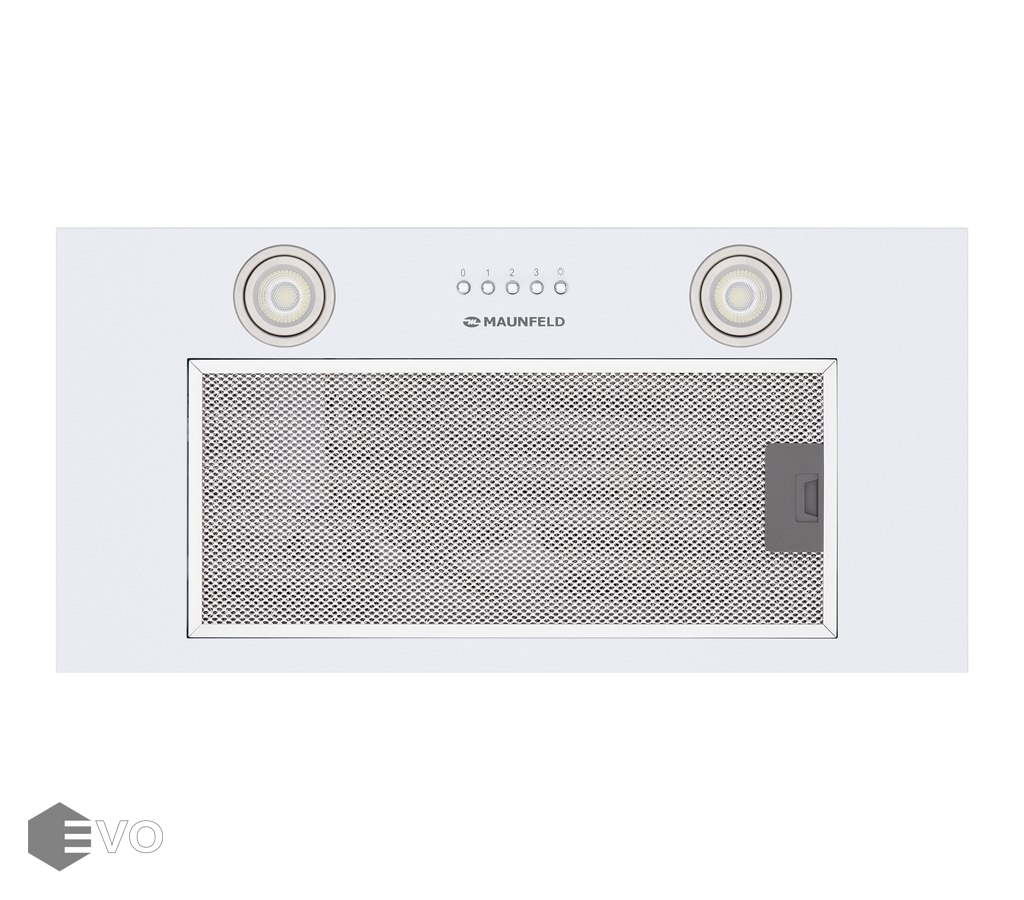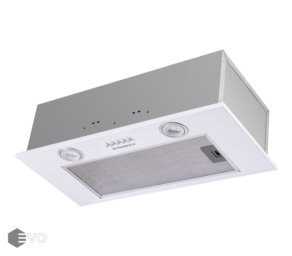 Полновстраиваемая вытяжка MAUNFELD Crosby Built 60 белый – кухонная вытяжка шириной 60 см – оптимальное решение для кухни площадью до 20 кв.м. Модель встраивается в навесной шкаф над поверхностью плиты. Работает в двух режимах – отвода (при подключении к системе вентиляции) и рециркуляции (при использовании сменного угольного фильтра).