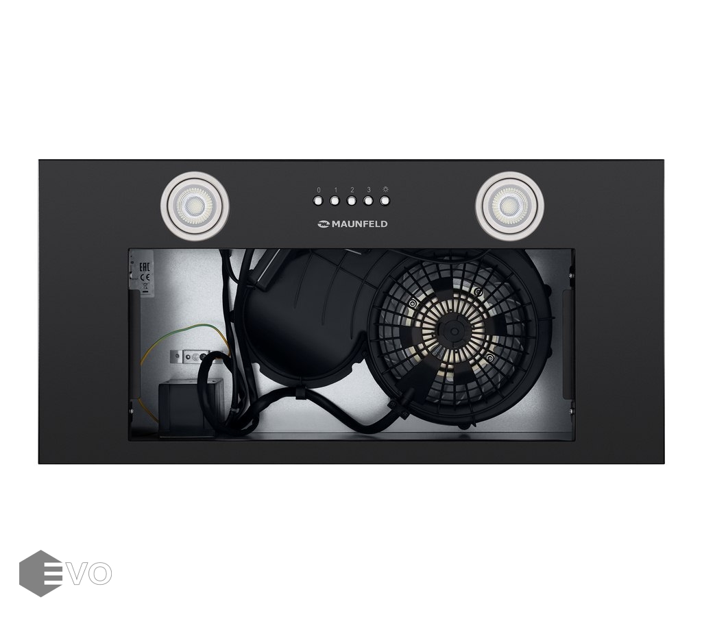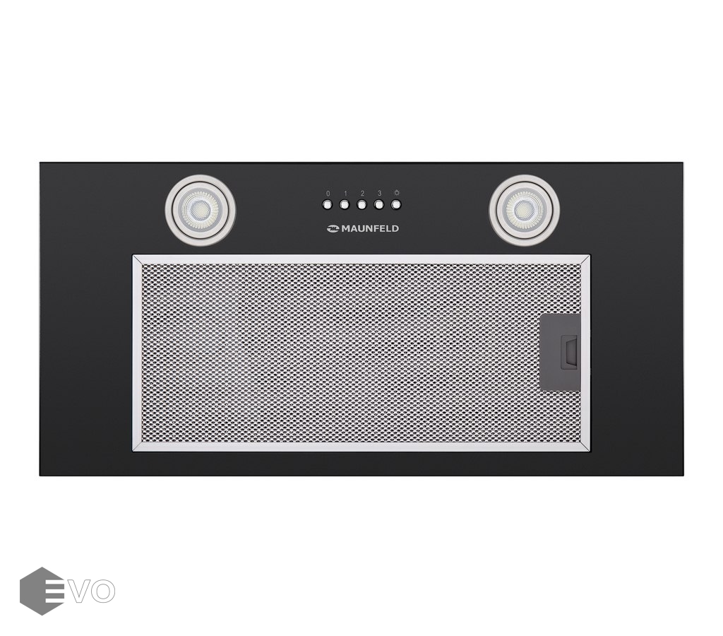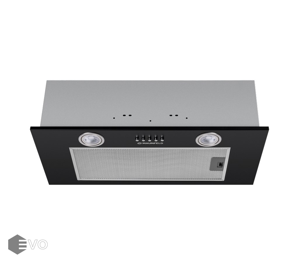 Полновстраиваемая вытяжка MAUNFELD Crosby Built 60 черный – кухонная вытяжка шириной 60 см – оптимальное решение для кухни площадью до 20 кв.м. Модель встраивается в навесной шкаф над поверхностью плиты. Работает в двух режимах – отвода (при подключении к системе вентиляции) и рециркуляции (при использовании сменного угольного фильтра).