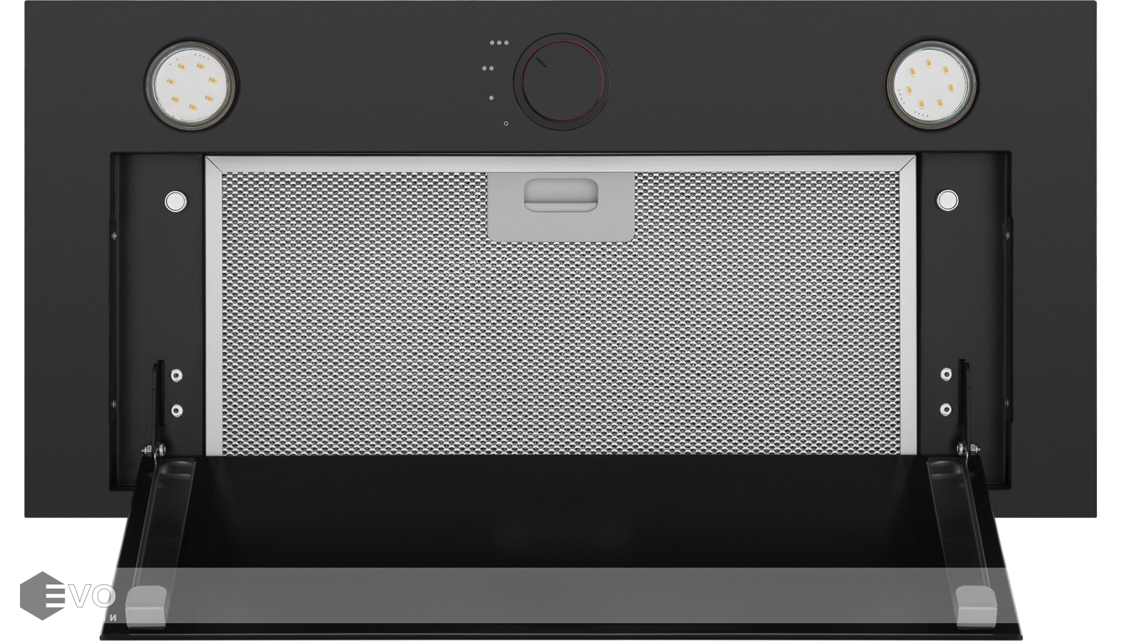 Корпус и фасад сделаны из нержавеющей стали с высококачественным покрытием. Откидная панель из глянцевого закаленного стекла фиксируется на магнитных защелках. За ней располагается легко снимающийся жироулавливающий алюминиевый фильтр. Загрязненный воздух втягивается по периметру откидной панели.