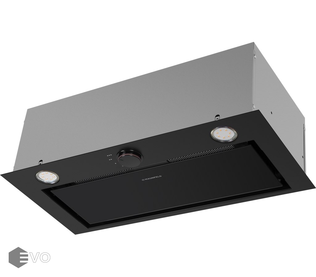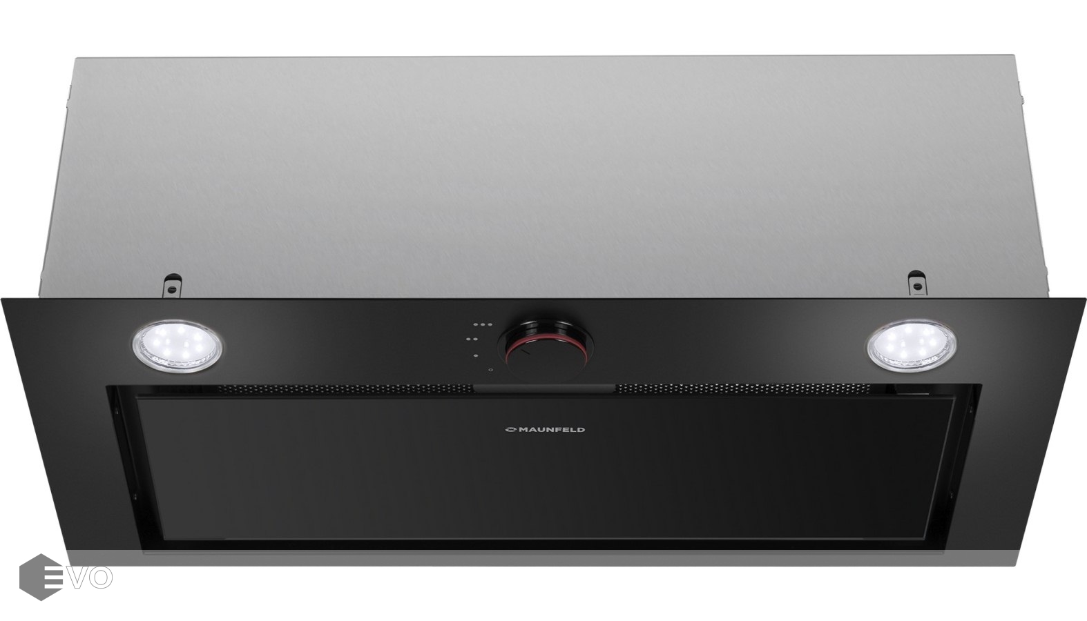 Полновстраиваемая вытяжка MAUNFELD Crosby Hardy 60 черный – кухонная вытяжка шириной 60 см, подойдет для кухни до 35 кв.м. Модель встраивается в навесной шкаф над поверхностью плиты. Работает в двух режимах – отвода (при подключении к системе вентиляции) и рециркуляции (при использовании сменного угольного фильтра).