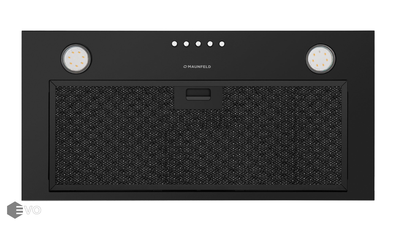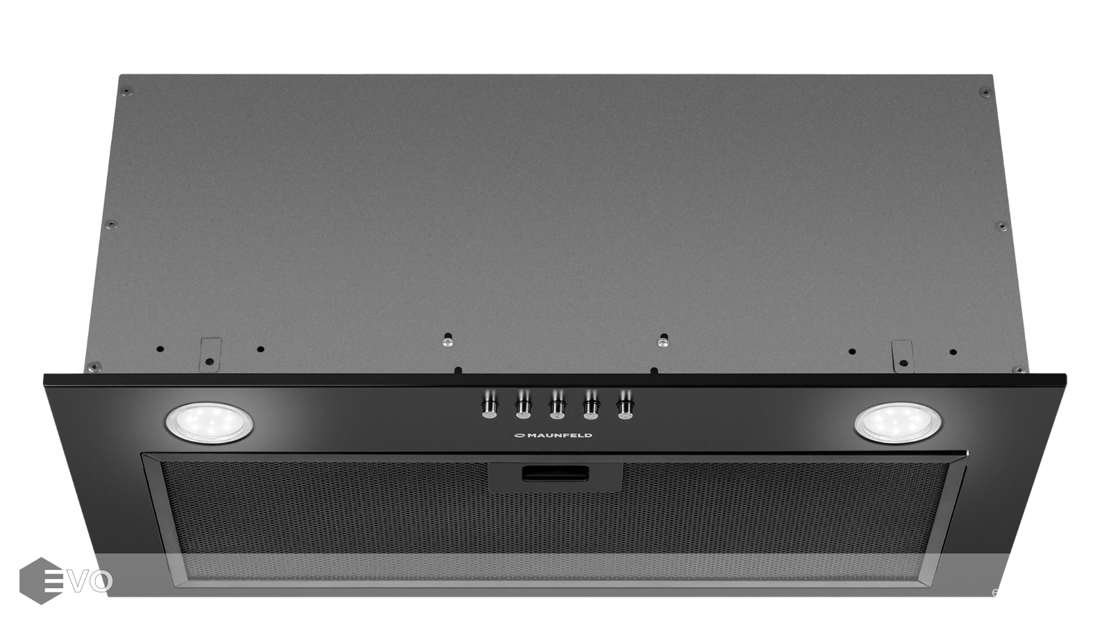 Полновстраиваемая вытяжка MAUNFELD Crosby Power 50 черный – кухонная вытяжка шириной 50 см – оптимальное решение для кухонь площадью до 35 кв.м. Модель встраивается в навесной шкаф над поверхностью плиты. Работает в двух режимах – отвода (при подключении к системе вентиляции) и рециркуляции (при использовании сменного угольного фильтра).