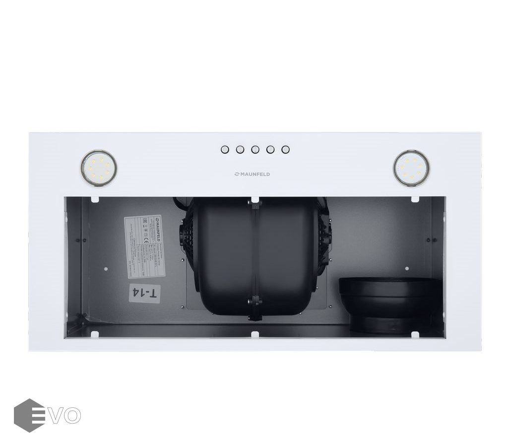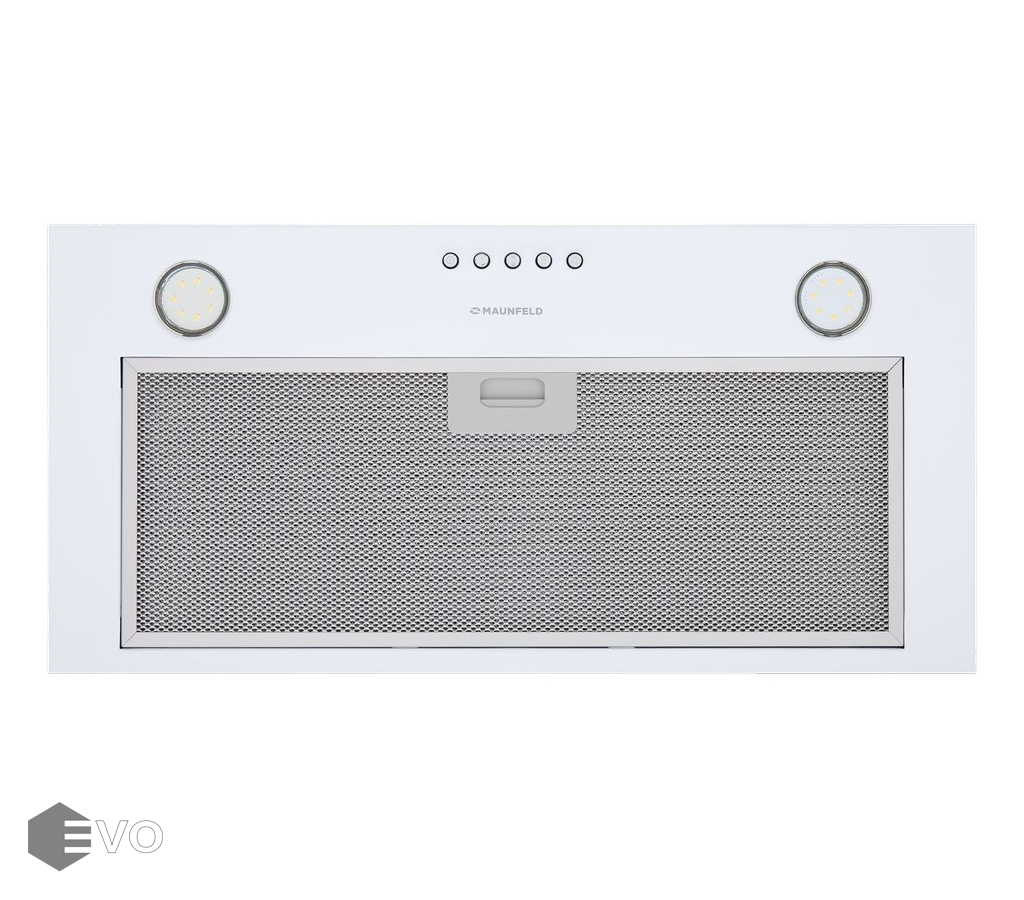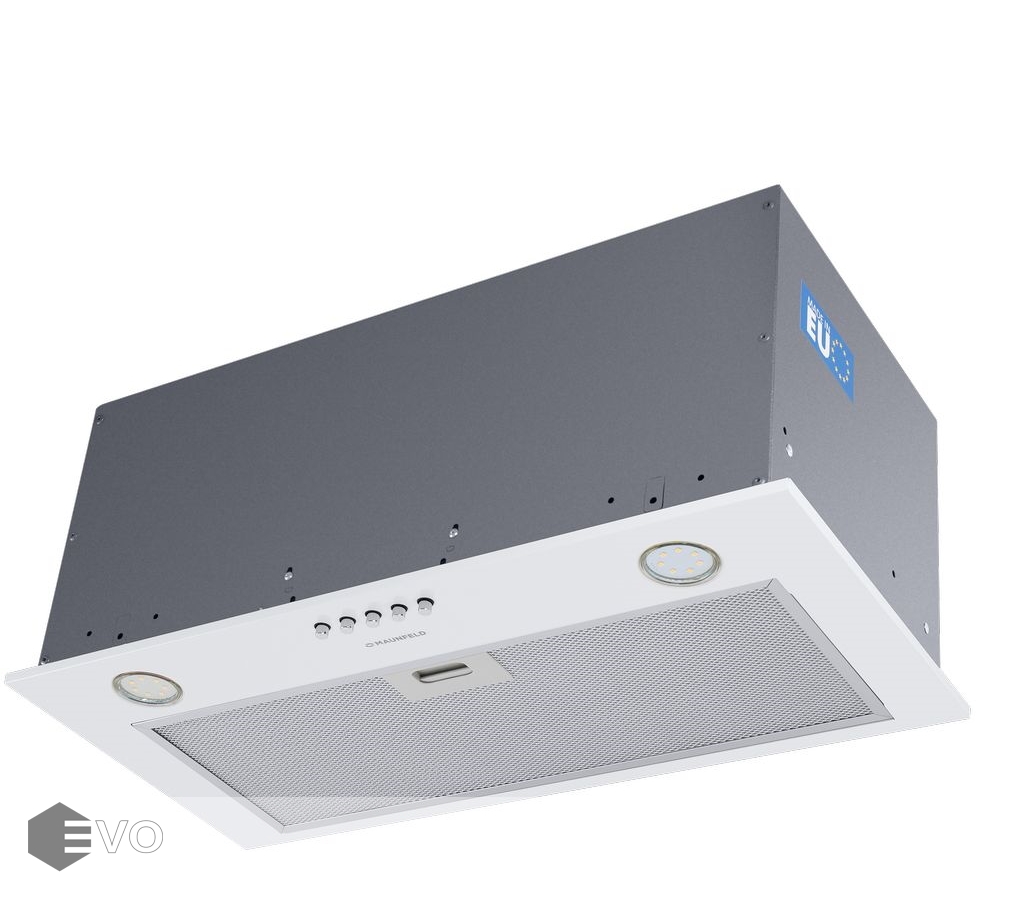 Полновстраиваемая вытяжка MAUNFELD Crosby Power 60 белый – кухонная вытяжка шириной 60 см – оптимальное решение для кухонь площадью до 35 кв.м. Модель встраивается в навесной шкаф над поверхностью плиты. Работает в двух режимах – отвода (при подключении к системе вентиляции) и рециркуляции (при использовании сменного угольного фильтра).