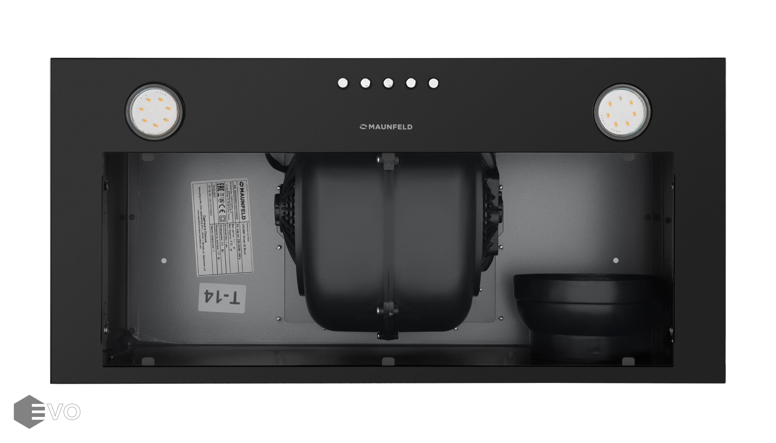 Полновстраиваемая вытяжка MAUNFELD Crosby Power 60 черный – кухонная вытяжка шириной 60 см – оптимальное решение для кухонь площадью до 35 кв.м. Модель встраивается в навесной шкаф над поверхностью плиты. Работает в двух режимах – отвода (при подключении к системе вентиляции) и рециркуляции (при использовании сменного угольного фильтра).