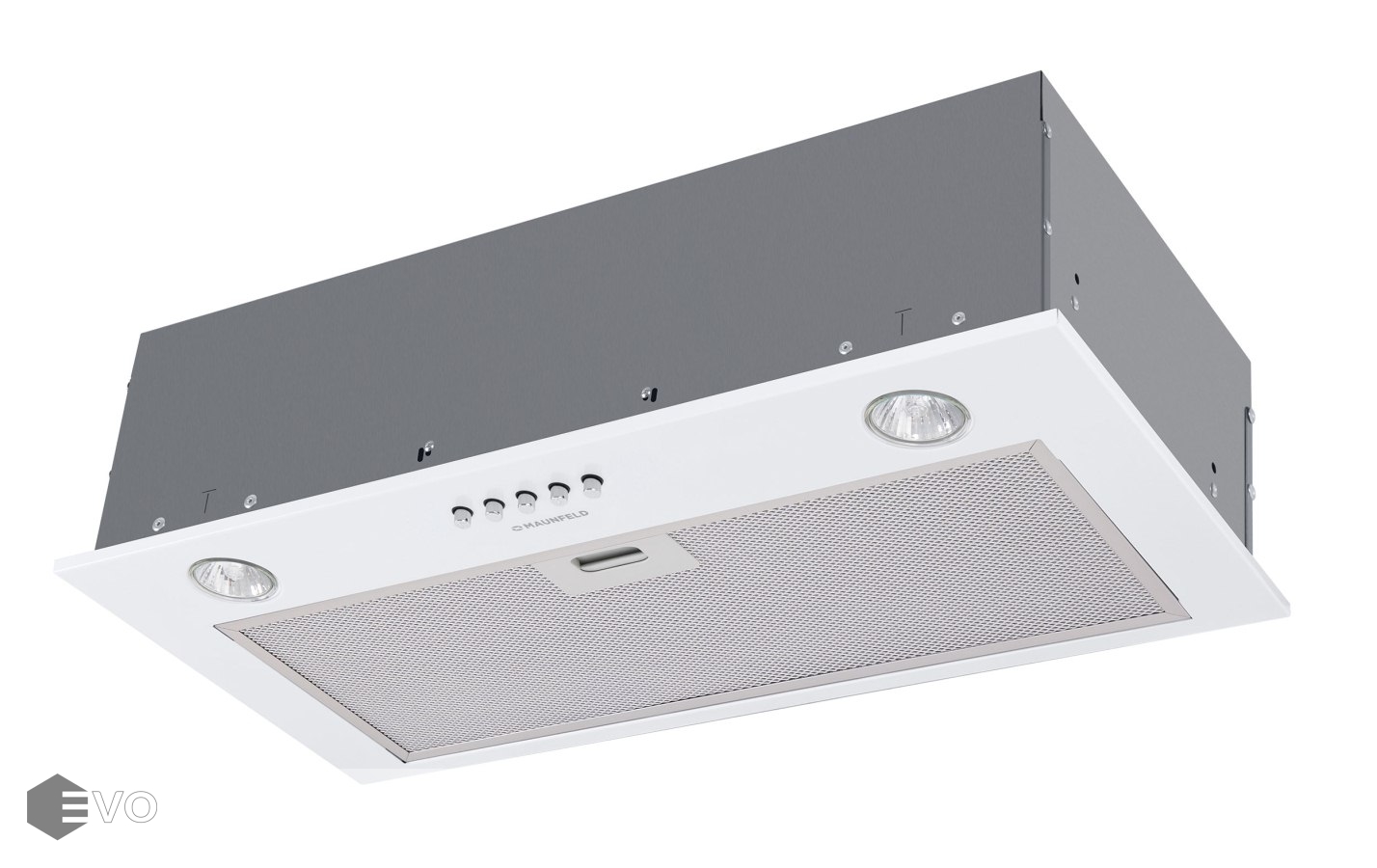 Полновстраиваемая вытяжка MAUNFELD Crosby Singl 5028 белый – встраиваемая кухонная вытяжка шириной 50 см подходит для кухни площадью до 30 кв.м., встраивается в навесной шкаф над поверхностью плиты. Работает в двух режимах – отвода (при подключении к системе вентиляции) и рециркуляции (при использовании сменного угольного фильтра).