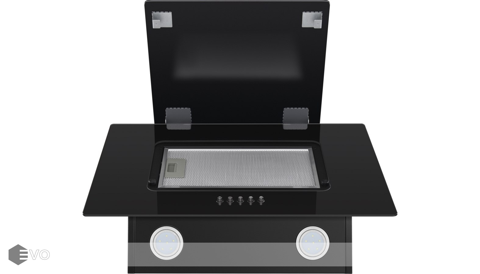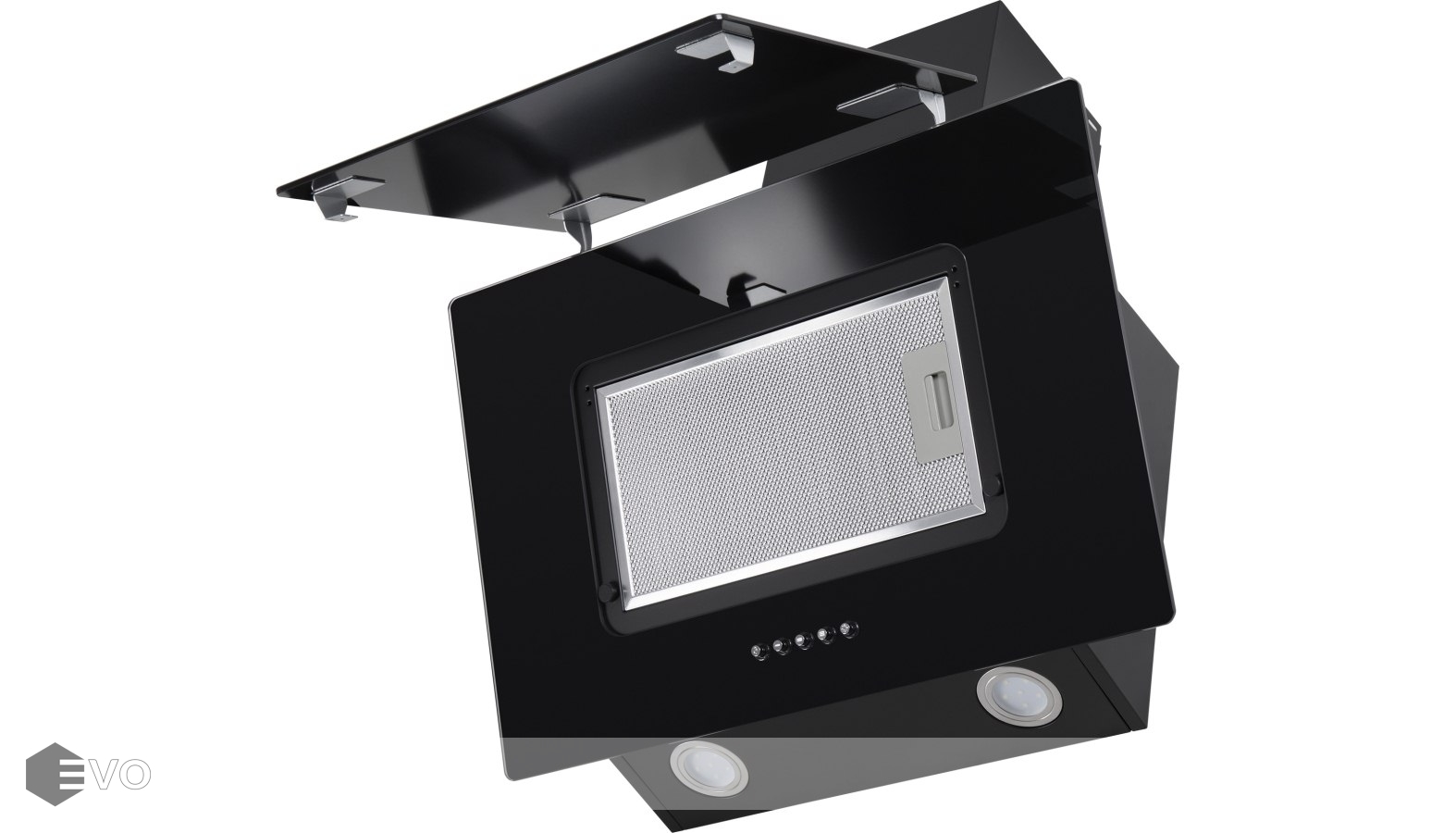 Корпус из нержавеющей стали выполнен в едином цвете с 2-мя фронтальными панелями из закаленного стекла черного цвета. Откидная панель надежно фиксируется магнитными защелками и скрывает алюминиевый жироулавливающий фильтр, который легко снимается и полностью разбирается, что сильно упрощает чистку. Загрязненный воздух втягивается по всему периметру откидной панели.