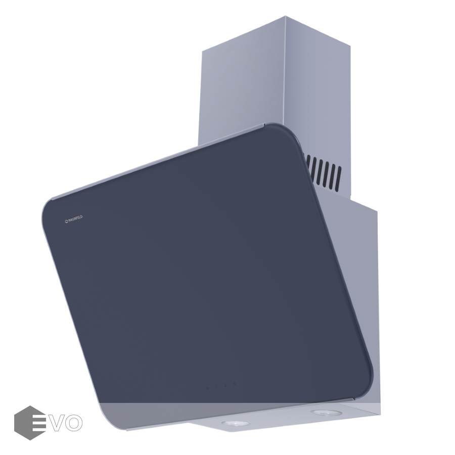 Наклонная вытяжка MAUNFELD Dream 60 графитовое стекло – вытяжка прекрасно подойдет для большой кухни (до 35 кв.м). Работает в двух режимах – отвода (при подключении к системе вентиляции) и рециркуляции (при использовании сменного угольного фильтра). Сенсорное управление с дисплеем находится на фасаде. Можно включить: одну из 3-х скоростей таймер (на 5 мин), свет (2 светодиодных элемента по 3 Вт).