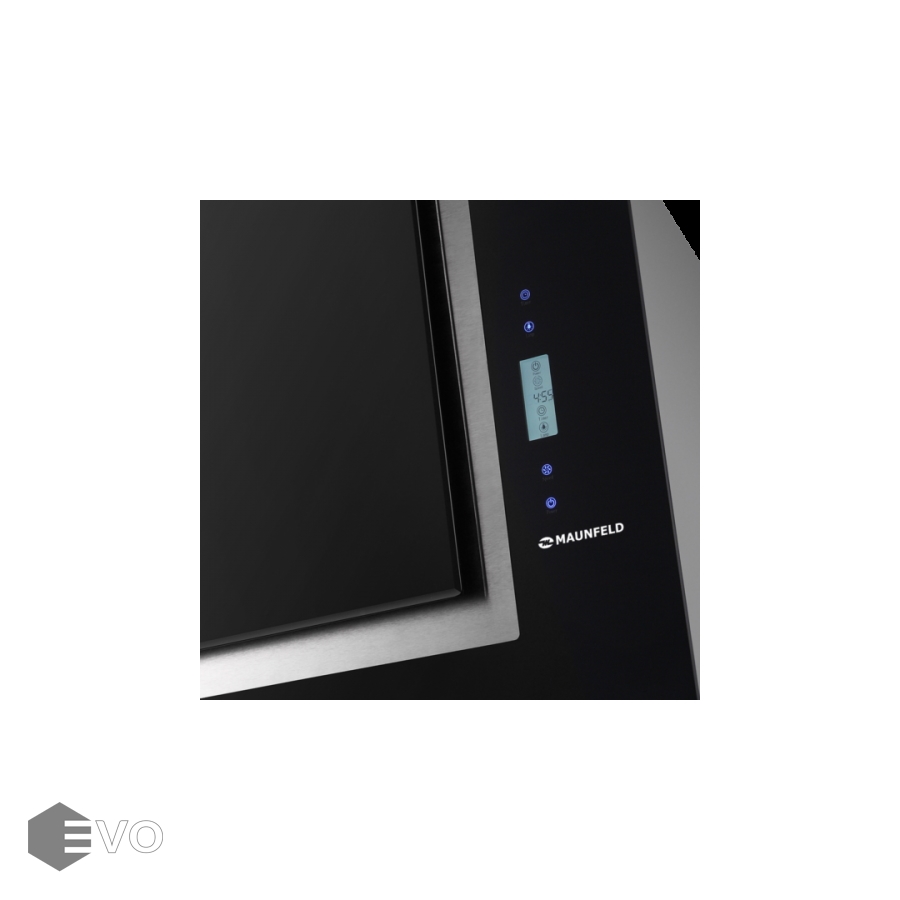 Наклонная вытяжка MAUNFELD Enver 80 черный – вытяжка шириной 80 см прекрасный выбор для очень большой кухни (до 40 кв.м), монтируется на стену над варочной поверхностью. Может использоваться для отвода воздуха из помещения при подключении к системе домовой вентиляции или очищать воздух с помощью сменного угольного фильтра.