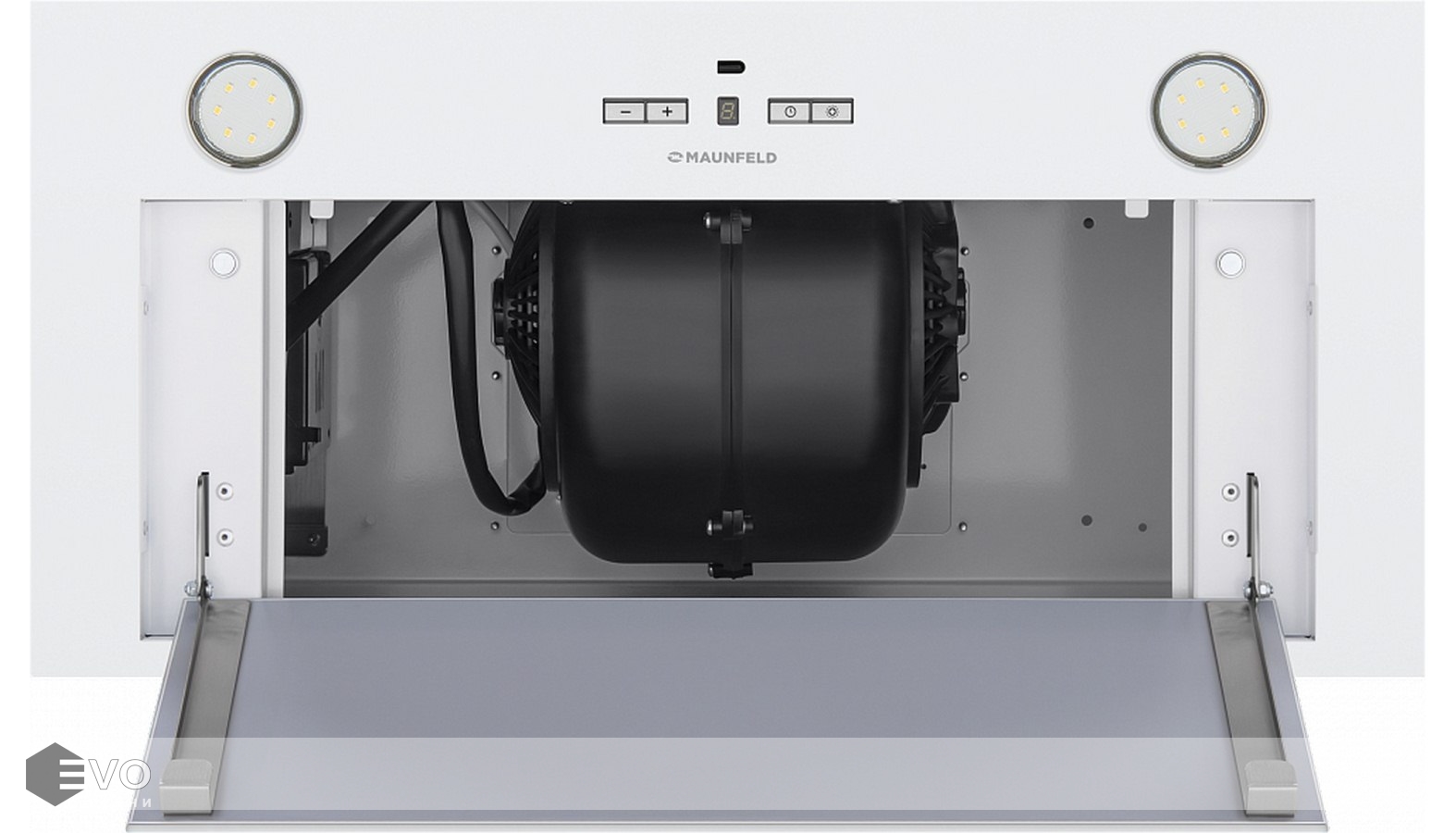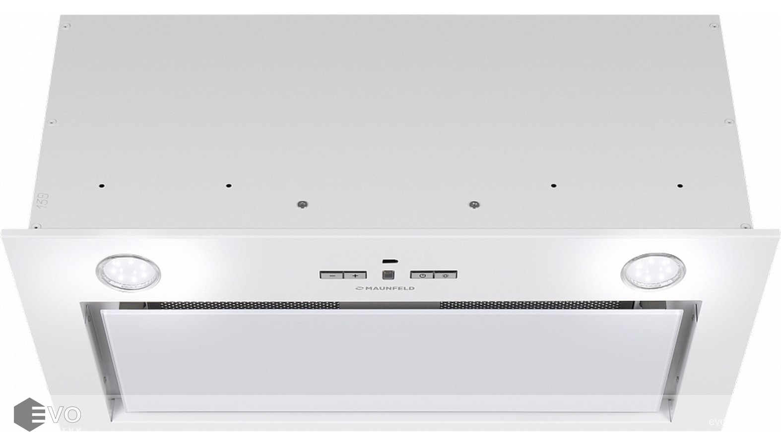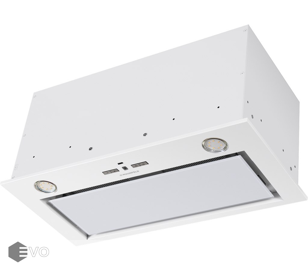 Полновстраиваемая вытяжка MAUNFELD Fantasy 1000ST 60 белое стекло – встраиваемая кухонная вытяжка шириной 60 см – прекрасное решение для кухни большой площади до 35 кв.м. Модель монтируется в навесной шкаф над поверхностью плиты. Работает в двух режимах – отвода (при подключении к системе вентиляции) и рециркуляции (при использовании сменного угольного фильтра). Пульт дистанционного управления идет в комплекте.