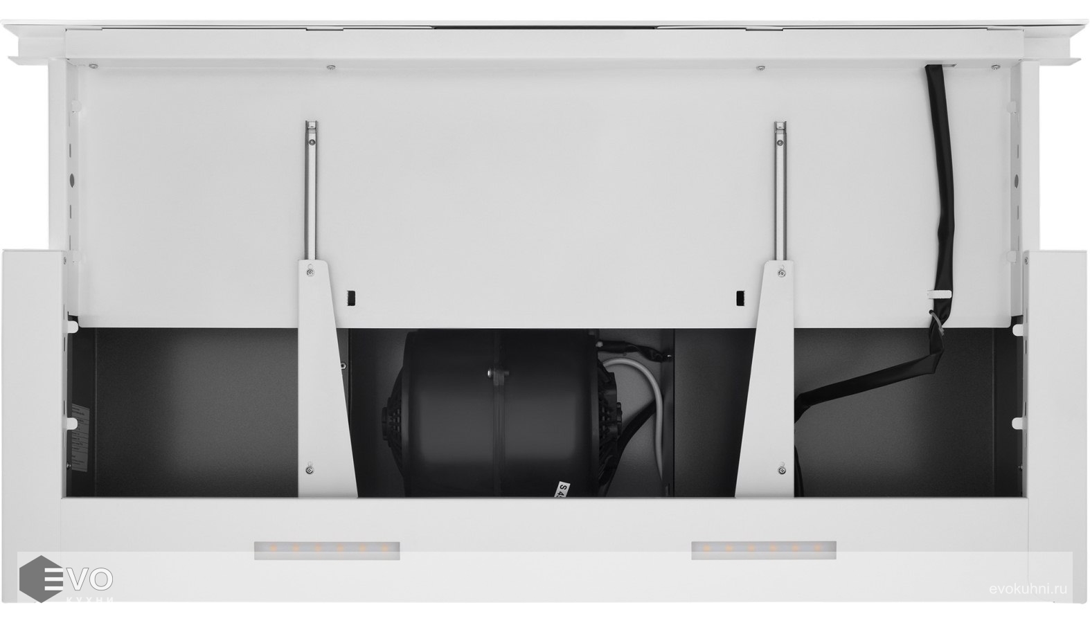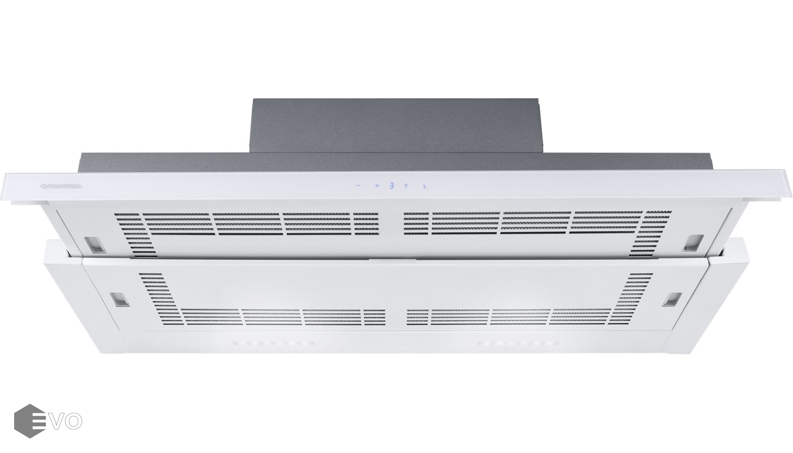 Выдвижная вытяжка MAUNFELD Galaxy 90 белый – телескопическая кухонная вытяжка с шириной 90 см благодаря выдвижному козырьку может эффективно очищать загрязненный воздух на в кухне очень большой площади (до 50 кв.м). Модель встраивается в навесной шкаф над поверхностью плиты. Работает в 2-х режимах – отвода (при подключении к системе вентиляции) и рециркуляции (при использовании сменного угольного фильтра).