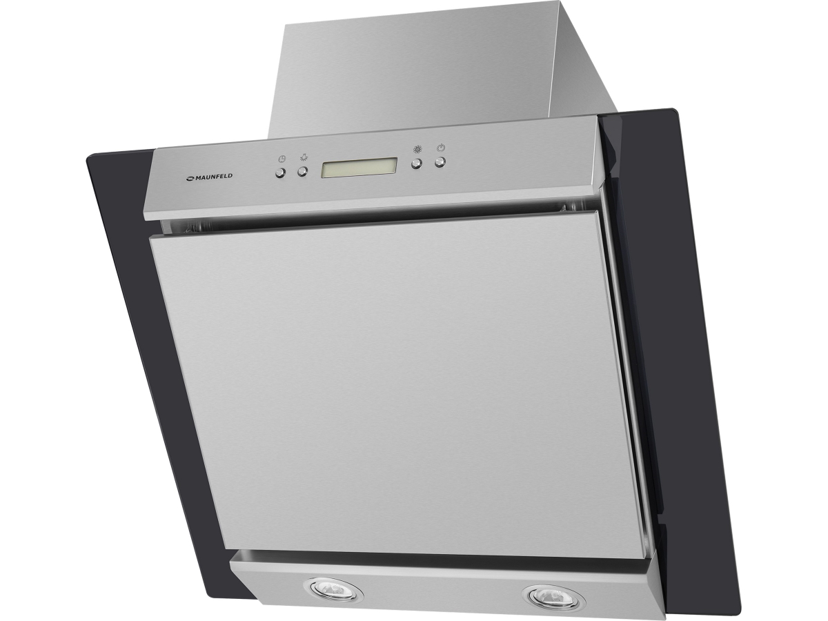 Наклонная вытяжка MAUNFELD Gloria 60 нержавеющая сталь\черное стекло - вытяжка способна эффективно работать на кухне очень большой площади (до 40 кв.м). Используется в двух режимах: отвода (при подключении к системе вентиляции) и рециркуляции (при использовании сменного угольного фильтра).