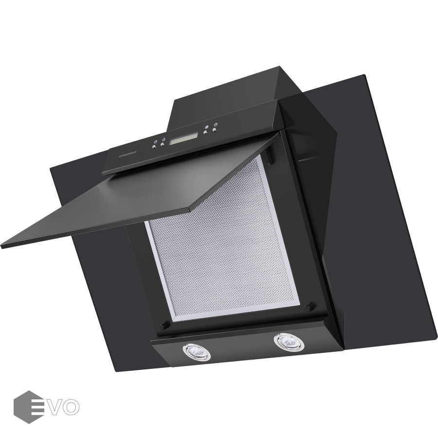 Наклонная вытяжка MAUNFELD Gloria 90 черный\черное стекло – наклонная вытяжка с увеличенной зоной захвата шириной 90 см способна эффективно работать на кухне очень большой площади (до 40 кв.м). Используется в двух режимах: отвода (при подключении к системе вентиляции) и рециркуляции (при использовании сменного угольного фильтра).