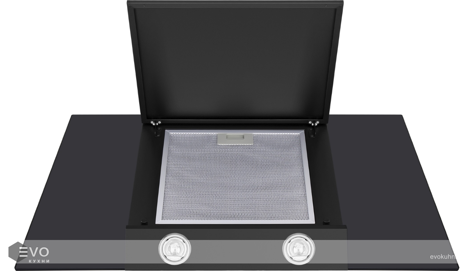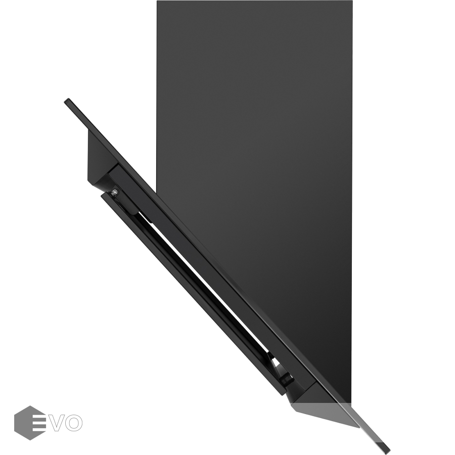 Корпус и откидная панель сделаны из матированной нержавеющей стали. Многослойный жироулавливающий алюминиевый фильтр, скрытый за откидной панелью, легко снимается и полностью разбирается, что сильно упрощает его чистку. Рабочая зона увеличена за счет боковых панелей из закаленного глянцевого стекла черного цвета.
