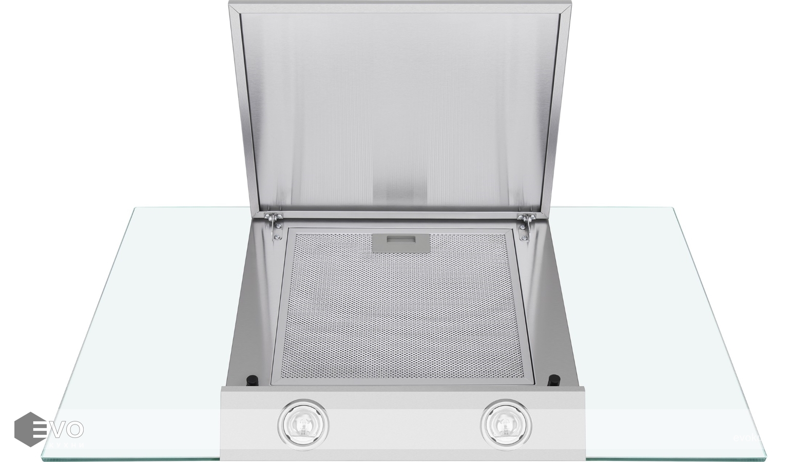 Корпус и фронтальная часть сделаны из матированной нержавеющей стали. Многослойный жироулавливающий алюминиевый фильтр, скрытый за откидной панелью, легко вынимается и полностью разбирается, что сильно упрощает его чистку. Рабочая зона увеличена за счет боковых панелей из закаленного стекла черного цвета.