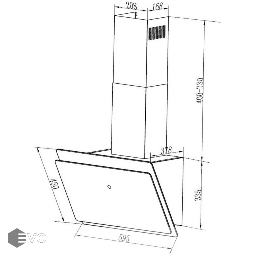 Корпус выполнен из нержавеющей стали. Фронтальная часть состоит из 2-х панелей из прочного закаленного стекла белого цвета. Они легко очищаются и долго сохраняют свой первозданный вид. За передней откидной панелью скрыт легко снимающийся алюминиевый жироулавливающий фильтр. Сенсорная панель с дисплеем расположена на фасаде. Можно включить: одну из 3-х скоростей таймер (на 9 мин), свет (2 светодиодных элемента по 1,5 Вт).