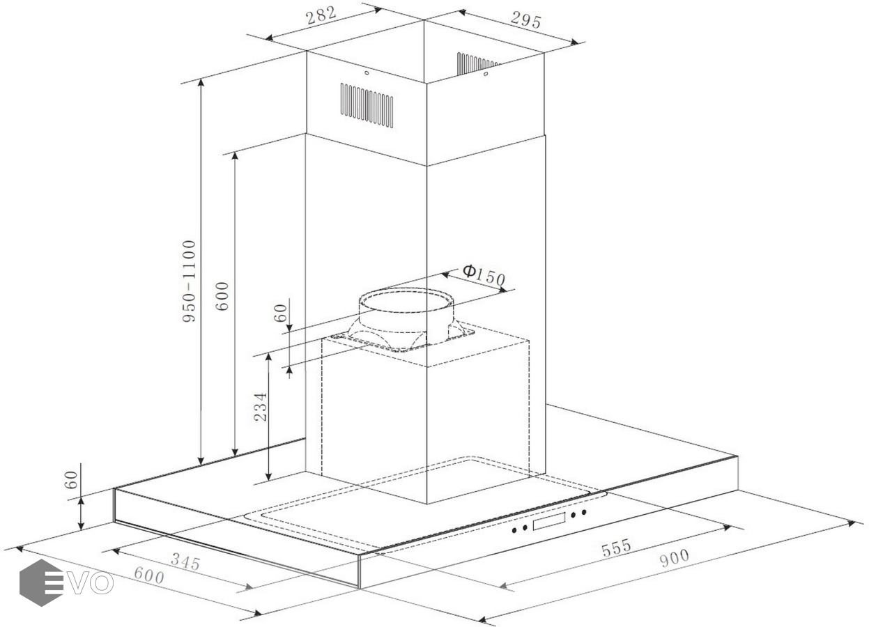 • Высота установки над электрическими варочными поверхностями, мм: 650