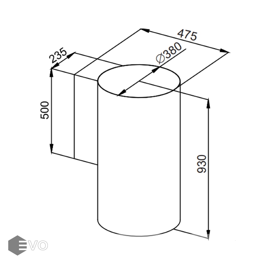 Корпус цилиндрической формы, сделанный из нержавеющей стали с термостойким покрытием, монтируется на стену над варочной поверхностью. Специальный многослойный жироулавливающий алюминиевый фильтр, расположенный в нижнем торце, легко снимается и полностью разбирается, что сильно упрощает его чистку.