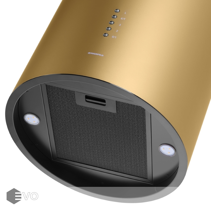 Цилиндрическая вытяжка MAUNFELD Lee Wall 39 золотой - вытяжка благодаря неординарному исполнению подчеркнет неповторимый дизайн вашей большой кухни (до 40 кв.м). В модели реализованы две возможности эксплуатации: режим прямого отвода загрязненного воздуха в вентиляционную шахту или режим рециркуляции воздушных масс и их очистки с помощью сменных угольных фильтров.
