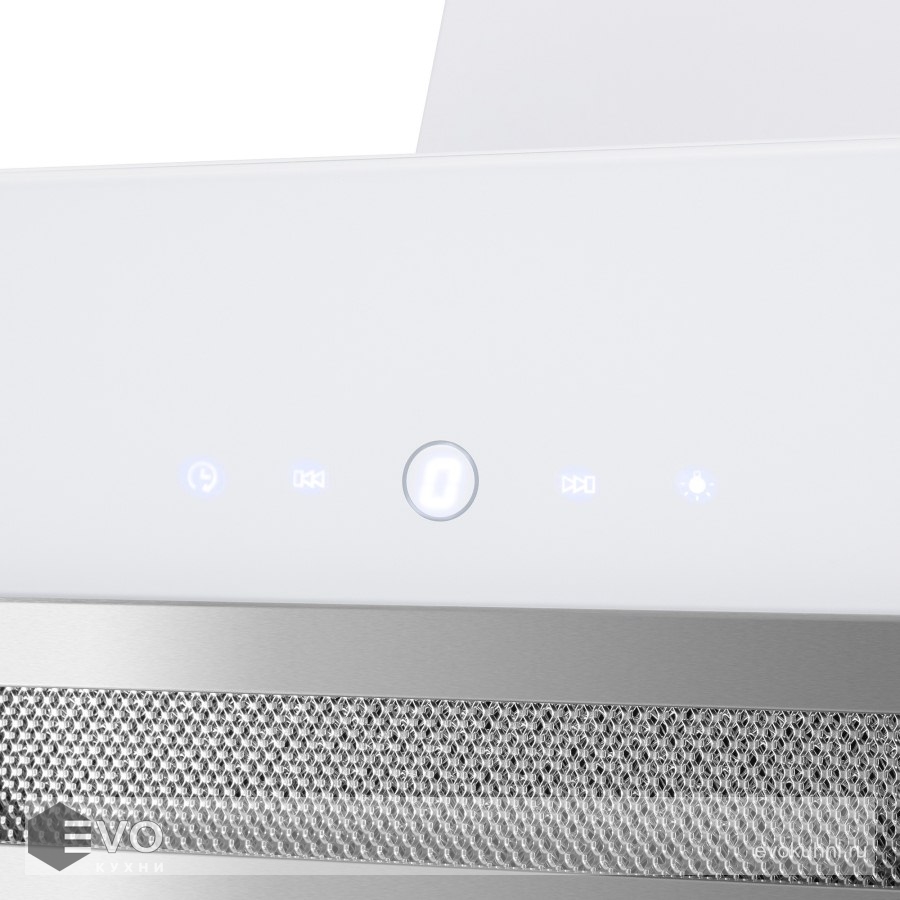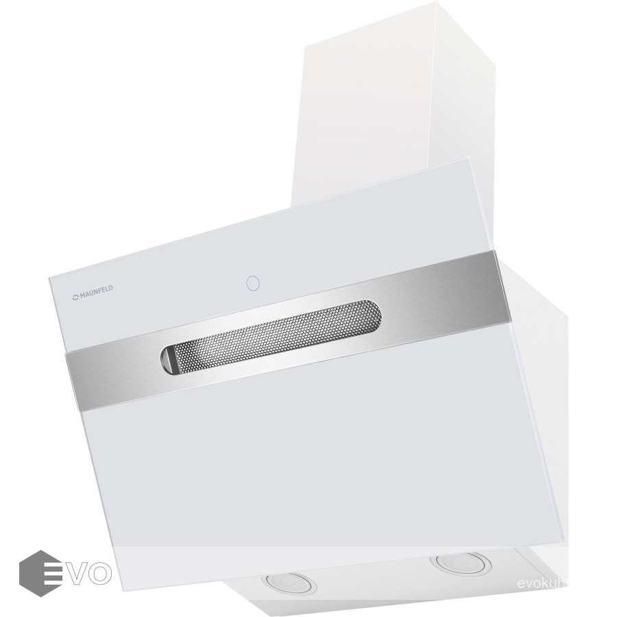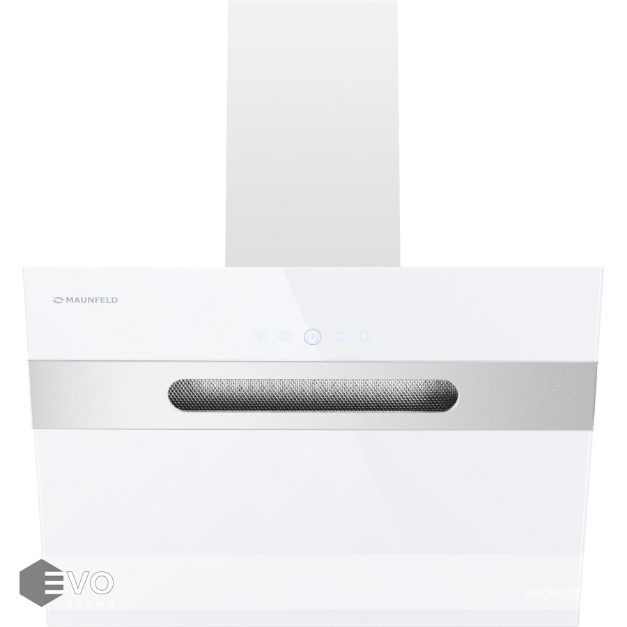 Наклонная вытяжка MAUNFELD Moon 60 белый\вставка сатин – вытяжка шириной 60 настенного типа крепления подходит для кухонь до 40 кв.м. Работает в двух режимах – отвода (при подключении к системе вентиляции) и рециркуляции (при использовании сменного угольного фильтра). Сенсорное управление осуществляется с помощью дисплея, расположенного фасаде. Можно включить: одну из 3-х скоростей, таймер (на 9 мин), свет (2 светодиодных элемента по 1,5 Вт).