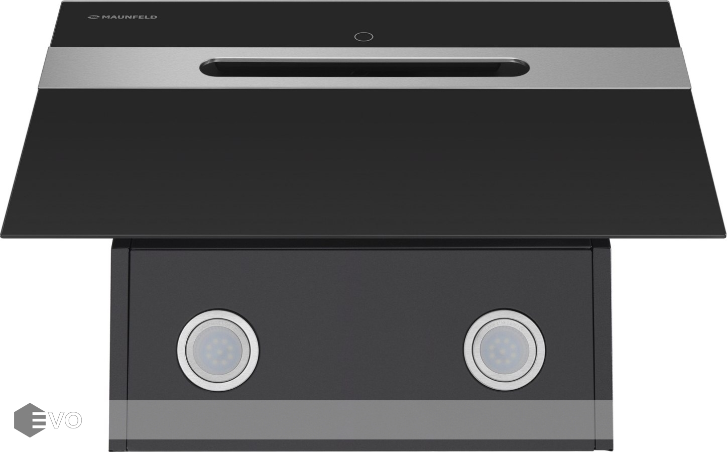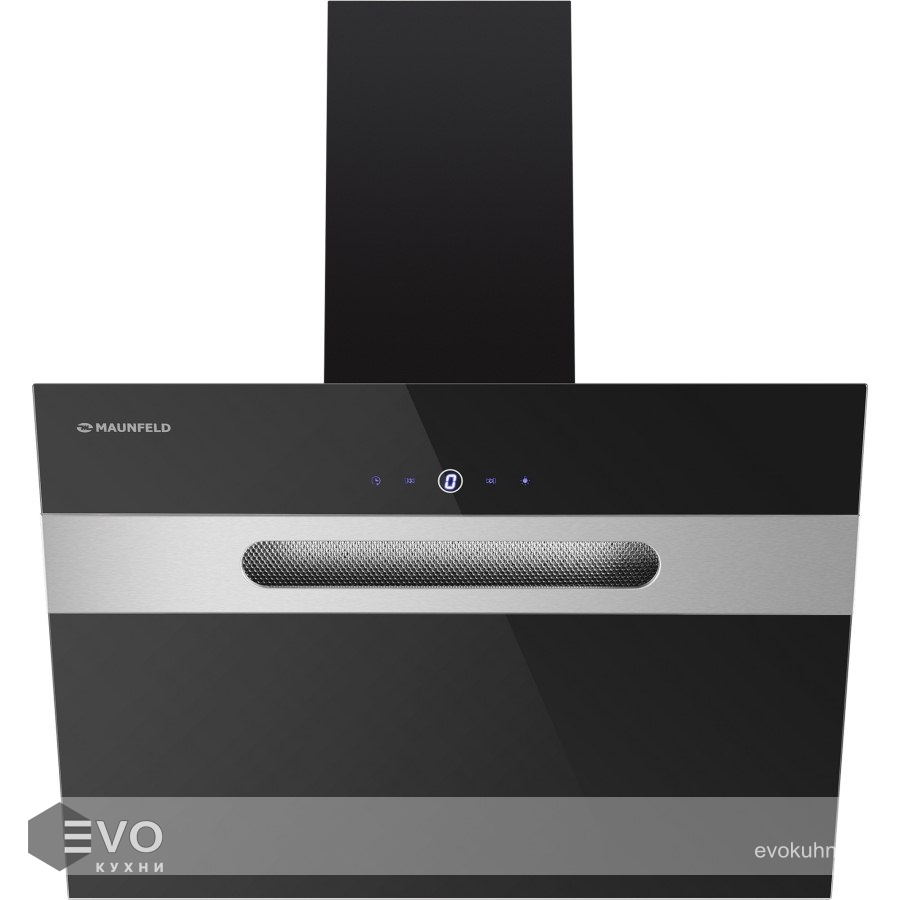 Наклонная вытяжка MAUNFELD Moon 60 черный\вставка сатин – вытяжка шириной 60 настенного типа крепления подходит для кухонь до 40 кв.м. Работает в двух режимах – отвода (при подключении к системе вентиляции) и рециркуляции (при использовании сменного угольного фильтра). Сенсорное управление осуществляется с помощью дисплея, расположенного фасаде. Можно включить: одну из 3-х скоростей, таймер (на 9 мин), свет (2 светодиодных элемента по 1,5 Вт).