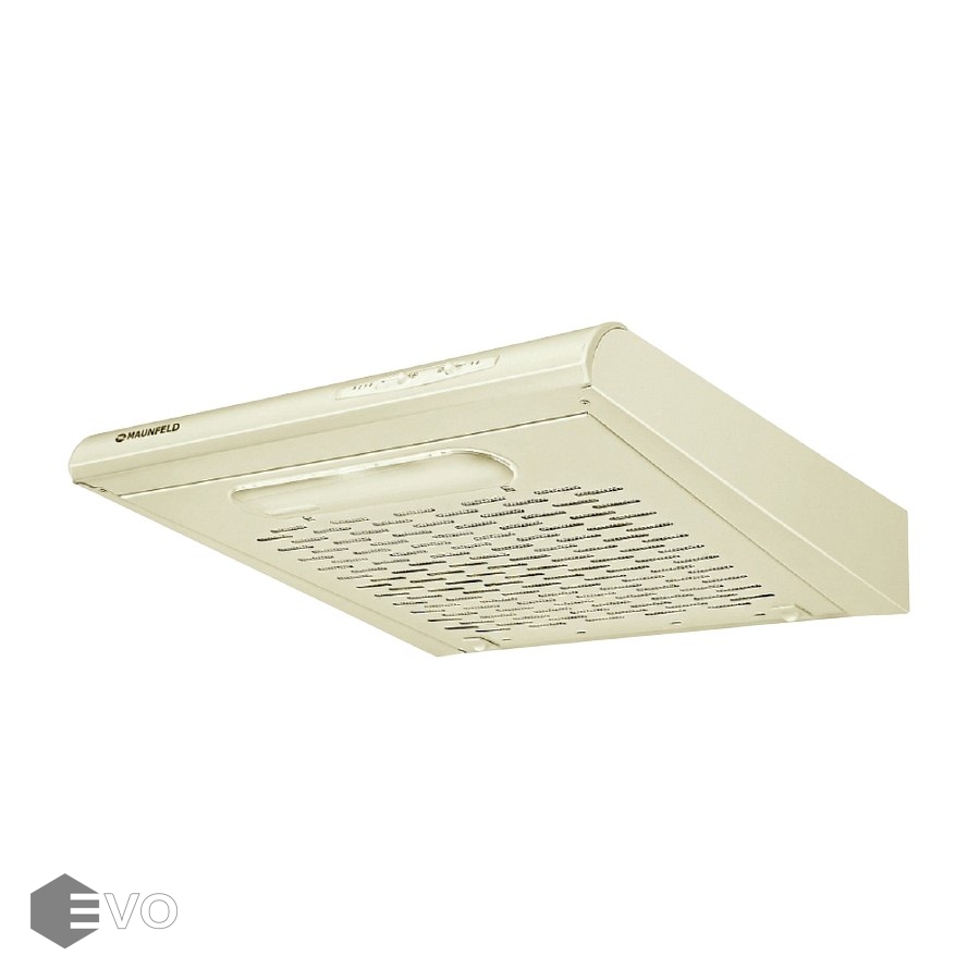 Козырьковая подвесная вытяжка MAUNFELD MPA 50 бежевый – подвесная кухонная вытяжка шириной 50 см, подойдет для небольшой кухни (до 12 кв. м). Может использоваться для отвода воздуха из помещения при подключении к системе домовой вентиляции или очищать воздух с помощью сменного угольного фильтра. Управление работой с помощью ползункового переключателя расположенного на торце вытяжки, позволяет выбрать одну из 3-х скоростей работы вентилятора и включить освещение.