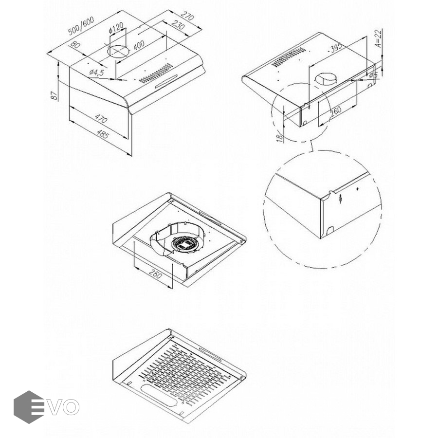 | Тип вытяжки : | Подвешиваемая на шкаф |