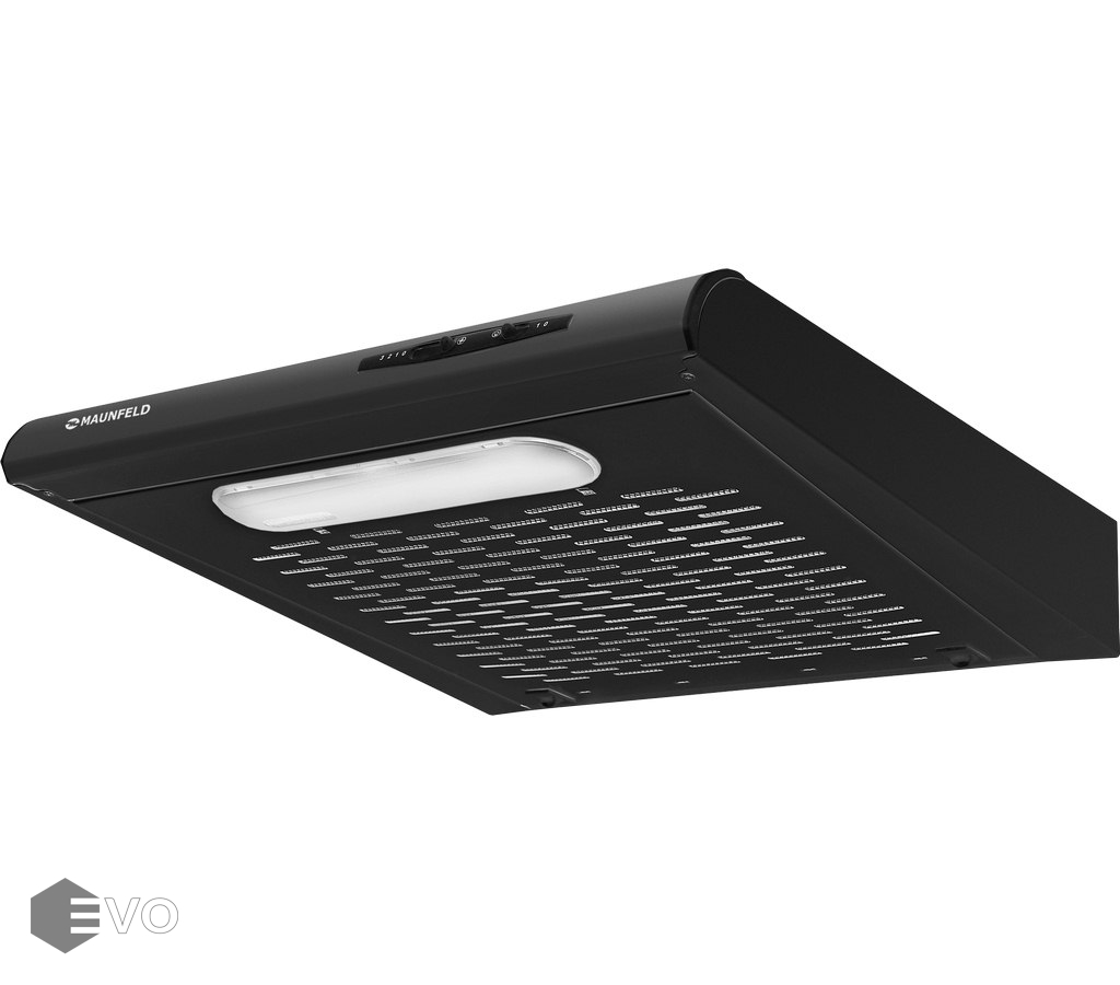 Козырьковая подвесная вытяжка MAUNFELD MPA 50 черный – подвесная кухонная вытяжка шириной 50 см, подойдет для небольшой кухни (до 12 кв. м). Может использоваться для отвода воздуха из помещения при подключении к системе домовой вентиляции или очищать воздух с помощью сменного угольного фильтра. Управление работой с помощью ползункового переключателя расположенного на торце вытяжки, позволяет выбрать одну из 3-х скоростей работы вентилятора и включить освещение.
