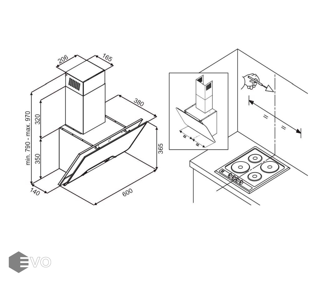 • Высота установки над электрическими варочными поверхностями, мм:550