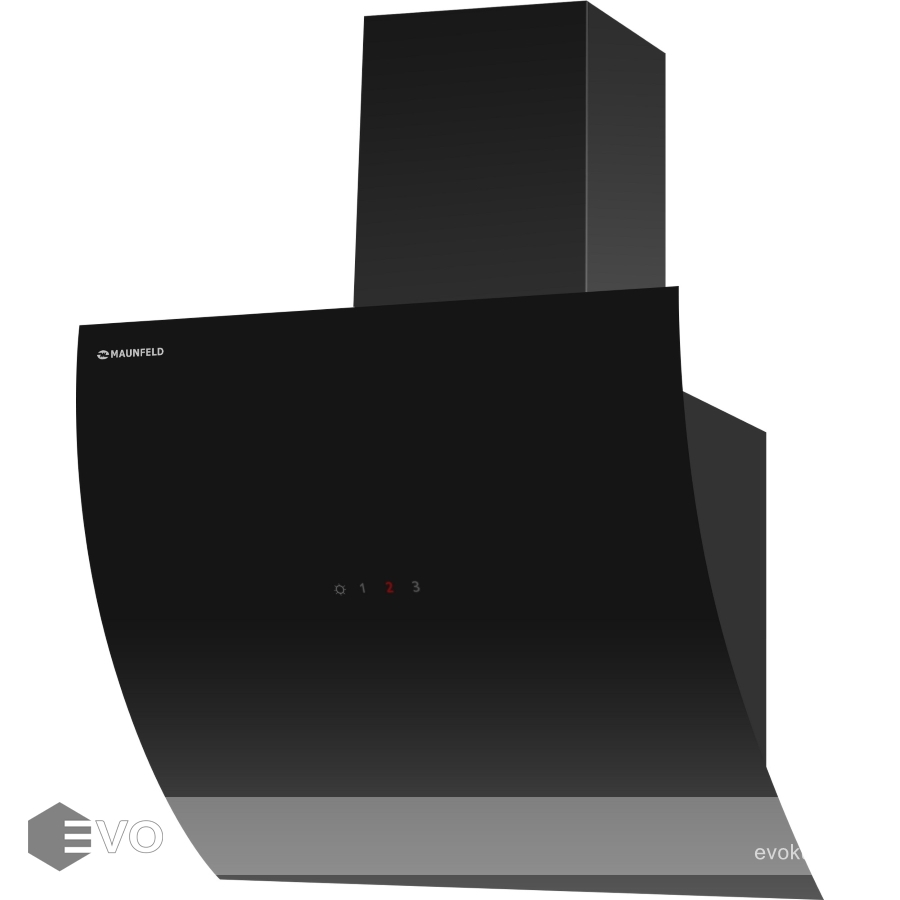 Наклонная вытяжка MAUNFELD Sky Star 60 черный – вытяжка шириной 60 см крепится на стену над варочной панелью, оптимальное решение для кухни до 35 кв.м. Работает в двух режимах – отвода (при подключении к системе вентиляции) и рециркуляции (при использовании сменного угольного фильтра). Сенсорное управление осуществляется с помощью дисплея, расположенного фасаде. Можно включить: одну из 3-х скоростей, таймер (на 1 - 15 мин), свет (2 светодиодных элемента по 3 Вт).