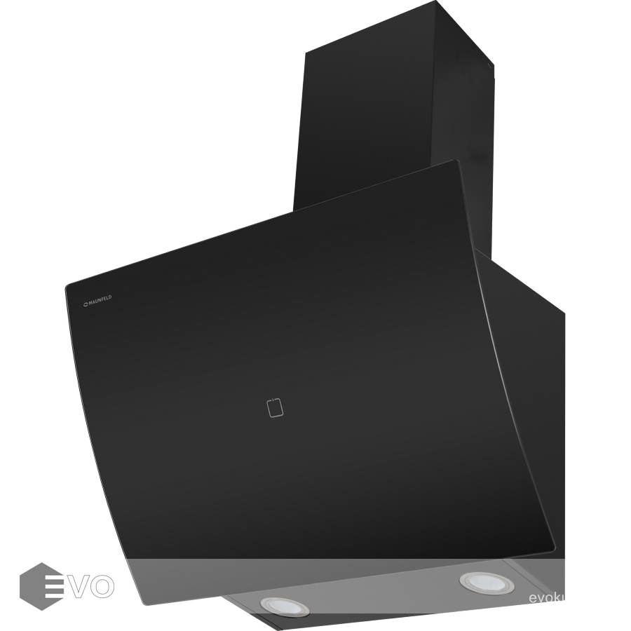 Наклонная вытяжка MAUNFELD Sky Star Chef 50 черный – наклонная вытяжка шириной 50 см белого цвета крепится на стену над варочной панелью. Оптимальное решение для кухонь площадью до 35 кв.м. Работает в двух режимах – отвода (при подключении к системе вентиляции) и рециркуляции (при использовании сменного угольного фильтра). Сенсорное управление осуществляется с помощью дисплея, расположенного фасаде. Можно включить: одну из 3-х скоростей, таймер (на 15 мин), свет (2 светодиодных элемента по 1 Вт).