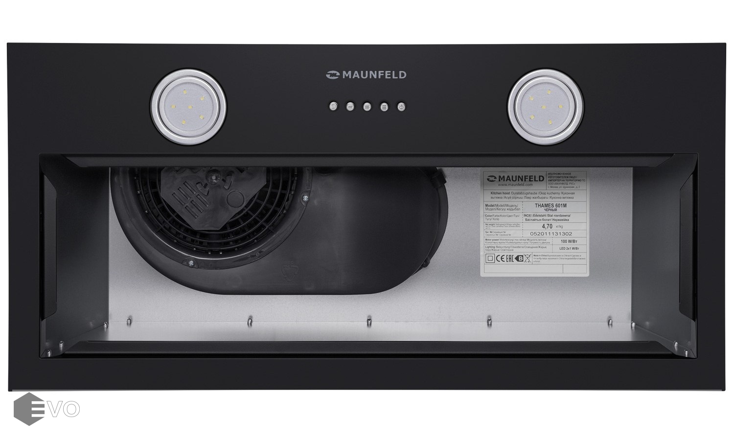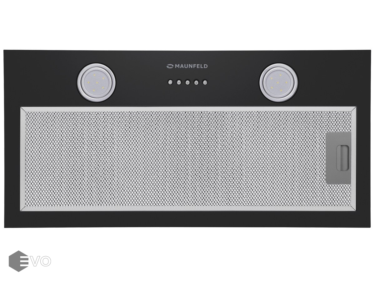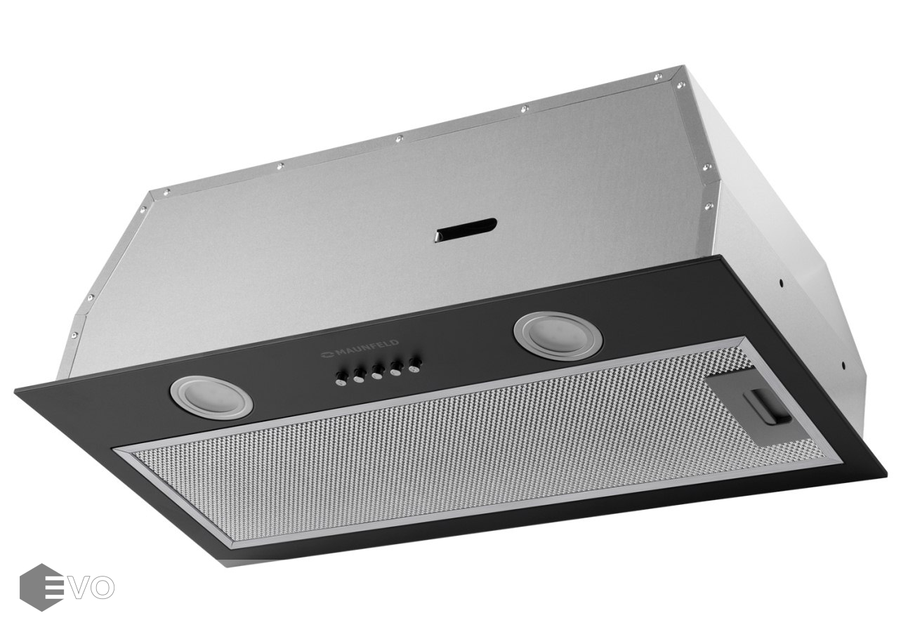 Полновстраиваемая вытяжка MAUNFELD THAMES 601M черный – кухонная вытяжка шириной 60 см – оптимальное решение для небольшой кухни (до 15 кв.м). Модель встраивается в навесной шкаф над поверхностью плиты. Работает в двух режимах – отвода (при подключении к системе вентиляции) и рециркуляции (при использовании сменного угольного фильтра).